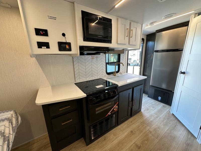 Cook with ease using the three-burner cooktop, microwave, stainless steel sink, and air fryer oven. Store your groceries in the pantry and 10.7 cu. ft. fridge.