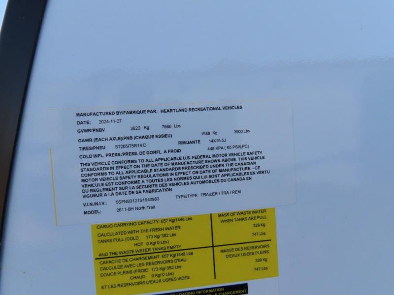 New 2025 Heartland North Trail 2611-BH Travel Trailer