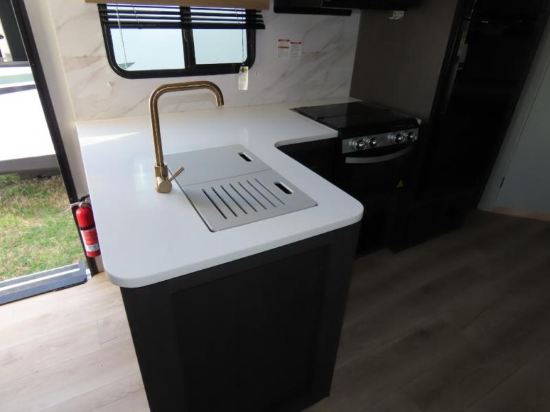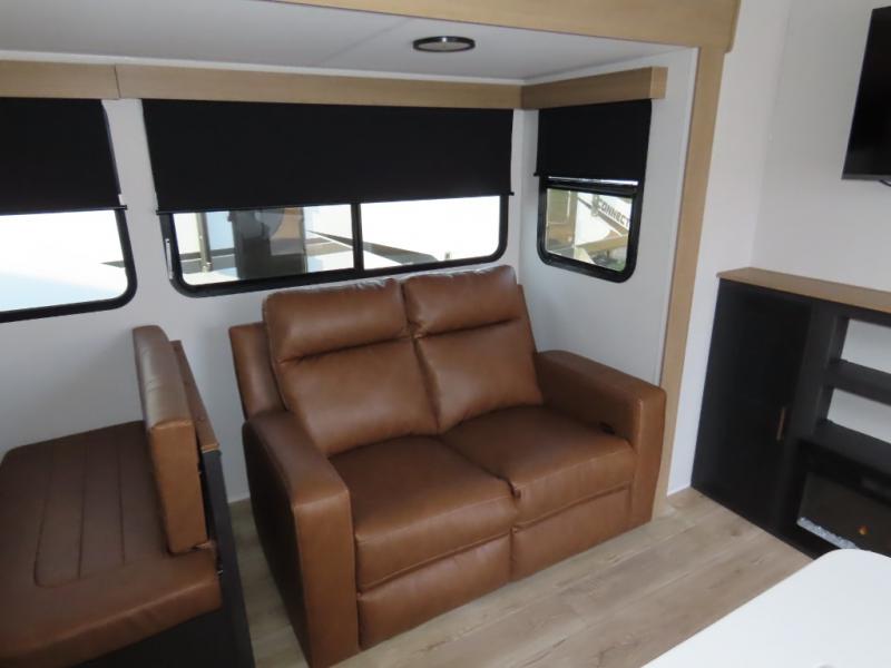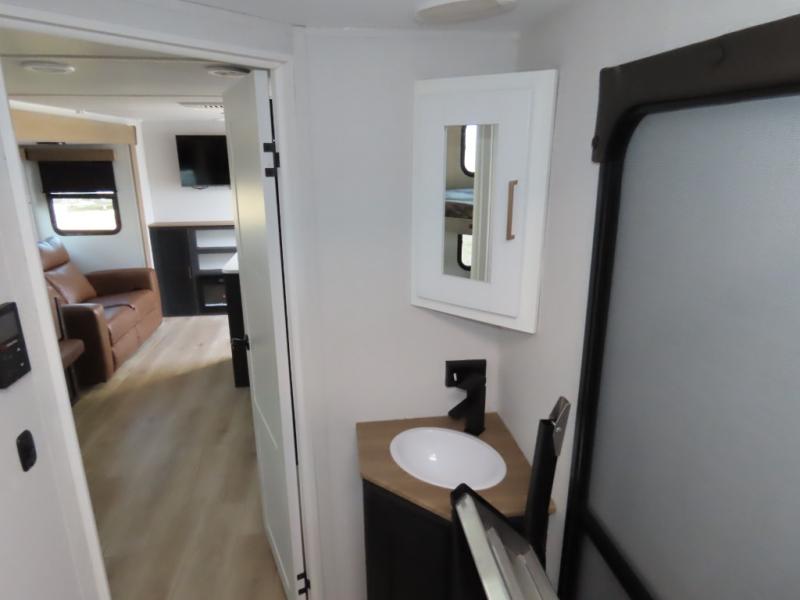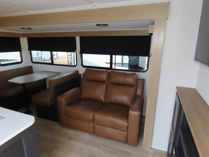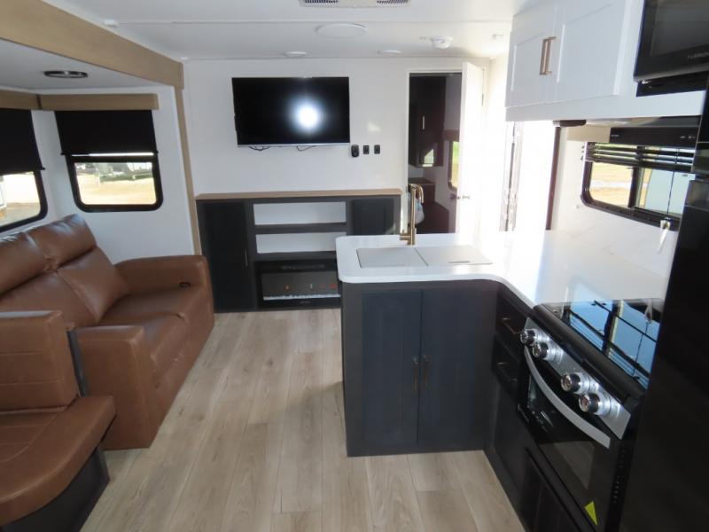 The block foam brick insulation, enclosed and heated underbelly, plus Weather Guard thermal protection mean you can camp all year around. Each model features a Wide Trax suspension for a smooth ride, and the backup camera prep and solar prep make camping that much easier if you choose those options. Some of the other exterior features you will appreciate are the outside shower, the power stabilizer jacks and power tongue jack, and the outside speakers to keep the party going. Head inside to find stainless steel appliances, oversized windows, and premium flooring that is tear, slip, mold, mildew and cold crack resistant! You can't beat a North Trail travel trailer. Choose your favorite floorplan today!