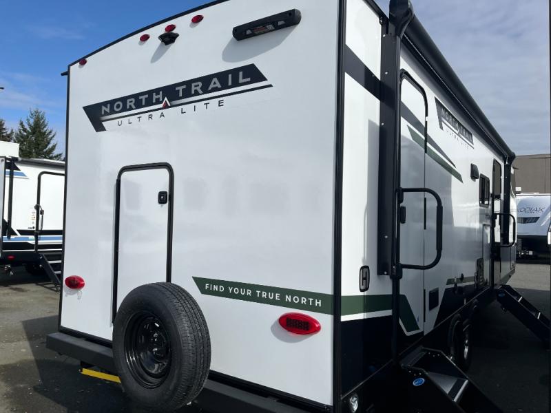 When you choose a North Trail Ultra-Lite travel trailer by Heartland you are choosing comfort, convenience, and quality craftsmanship at its best. The block foam brick insulation, enclosed and heated underbelly, plus Weather Guard thermal protection mean you can camp all year around. Each model features a Wide Trax suspension for a smooth ride, and the backup camera prep and solar prep make camping that much easier if you choose those options. Some of the other exterior features you will appreciate are the outside shower, the power stabilizer jacks and power tongue jack, and the outside speakers to keep the party going. Head inside to find stainless steel appliances, oversized windows, and premium flooring that is tear, slip, mold, mildew and cold crack resistant! You can't beat a North Trail travel trailer. Choose your favorite floorplan today!