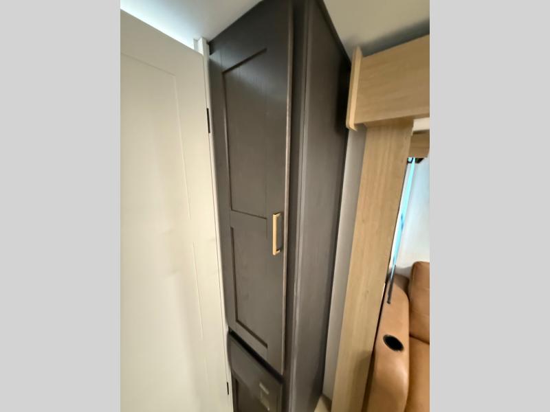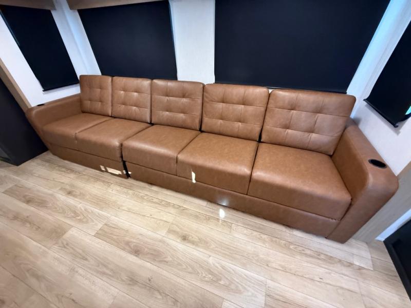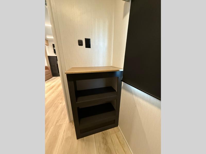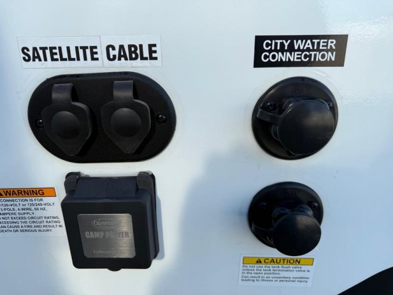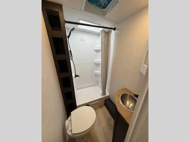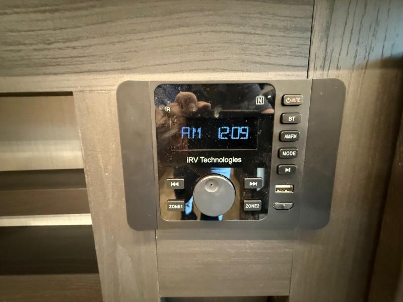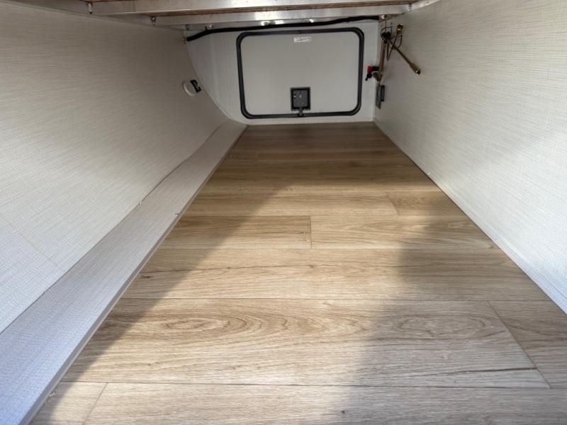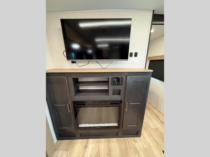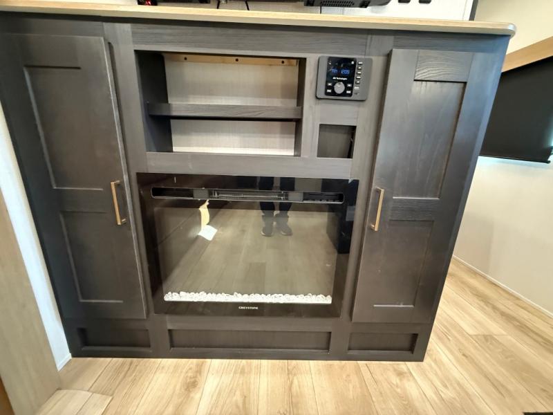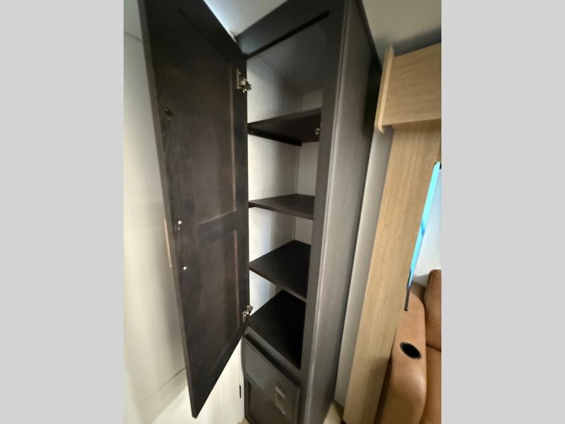 Head out to your favorite camping spots and take along a few friends! This North Trail unit features a set of flip-up double-size bunks for four family members or friends, plus a private bedroom up front featuring a king sized 68" x 76" mattress for two more. Beneath the bunks, you will have storage space for bicycles and kayaks if you like, or just more storage for totes and things until you get to your camping spot. The private bedroom up front features a space saving sliding door and nightstands and clothing storage along either side of the bed. In the combined living and kitchen area, you will enjoy the added floor space thanks to the large slide out with the convertible sleeper sofa with a stowaway table. Outside, a 15' power awning offers more living space to enjoy both day and night. What are you waiting for, come check this unit out!