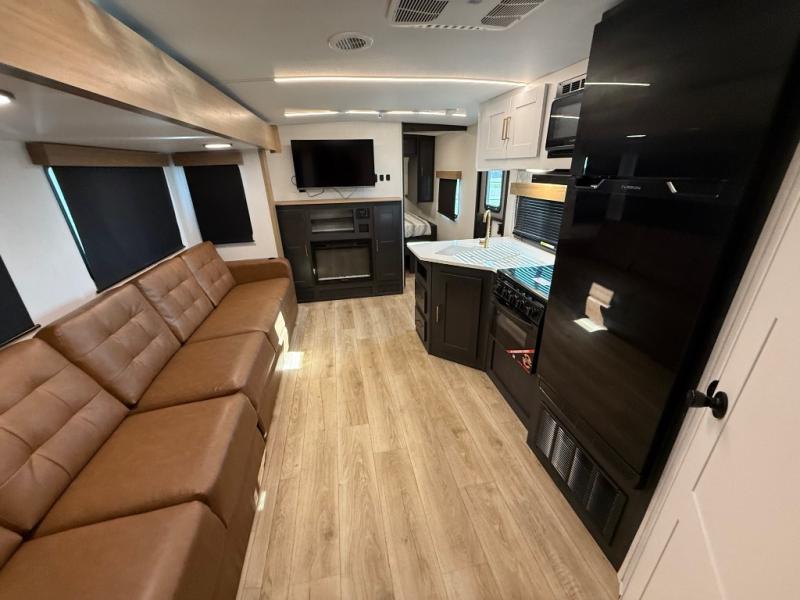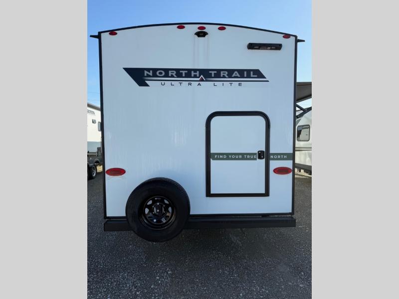 When you choose a North Trail Ultra-Lite travel trailer by Heartland you are choosing comfort, convenience, and quality craftsmanship at its best. The block foam brick insulation, enclosed and heated underbelly, plus Weather Guard thermal protection mean you can camp all year around. Each model features a Wide Trax suspension for a smooth ride, and the backup camera prep and solar prep make camping that much easier if you choose those options. Some of the other exterior features you will appreciate are the outside shower, the power stabilizer jacks and power tongue jack, and the outside speakers to keep the party going. Head inside to find stainless steel appliances, oversized windows, and premium flooring that is tear, slip, mold, mildew and cold crack resistant! You can't beat a North Trail travel trailer. Choose your favorite floorplan today!