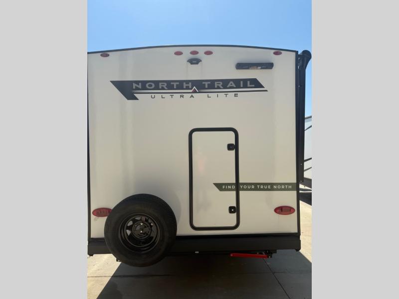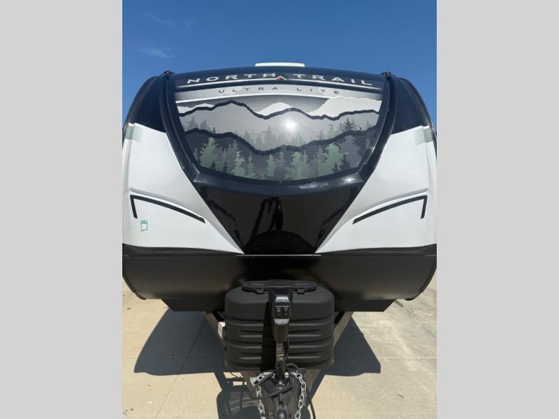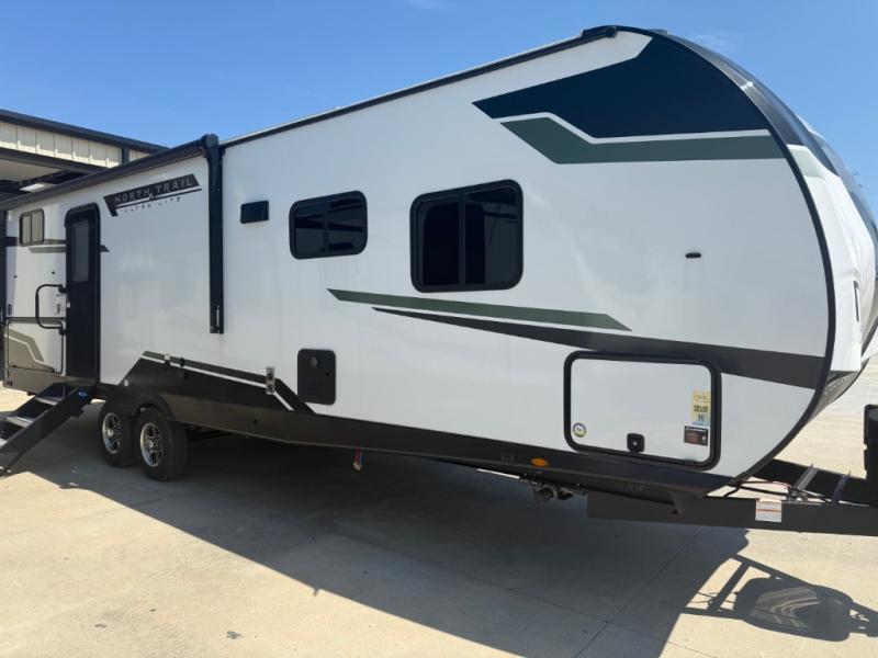 When you choose a North Trail Ultra-Lite travel trailer by Heartland you are choosing comfort, convenience, and quality craftsmanship at its best. The block foam brick insulation, enclosed and heated underbelly, plus Weather Guard thermal protection mean you can camp all year around. Each model features a Wide Trax suspension for a smooth ride, and the backup camera prep and solar prep make camping that much easier if you choose those options. Some of the other exterior features you will appreciate are the outside shower, the power stabilizer jacks and power tongue jack, and the outside speakers to keep the party going. Head inside to find stainless steel appliances, oversized windows, and premium flooring that is tear, slip, mold, mildew and cold crack resistant! You can't beat a North Trail travel trailer. Choose your favorite floorplan today!