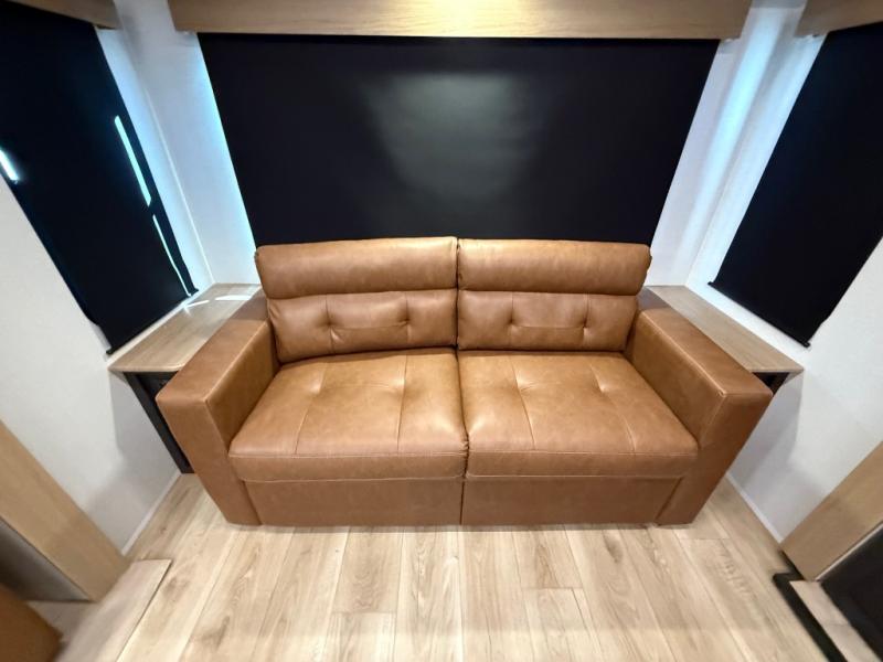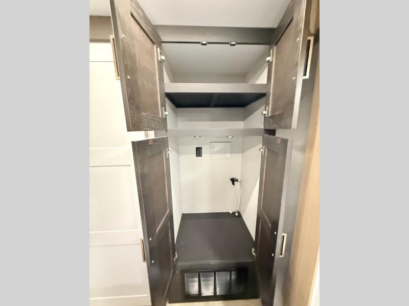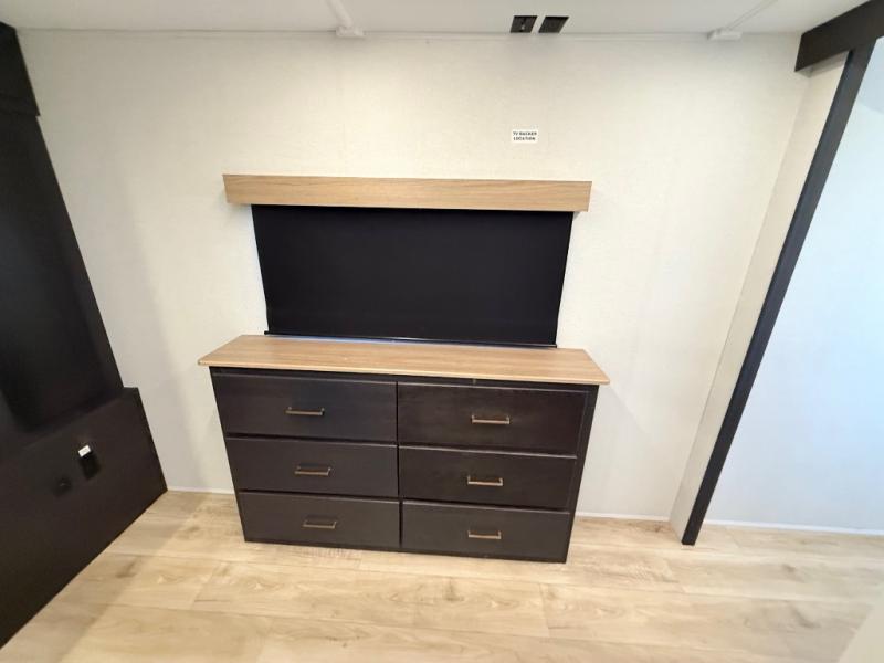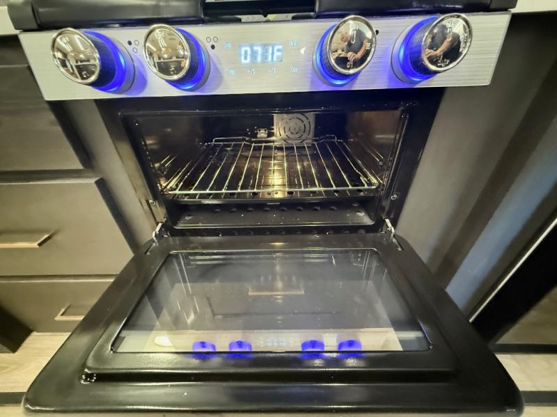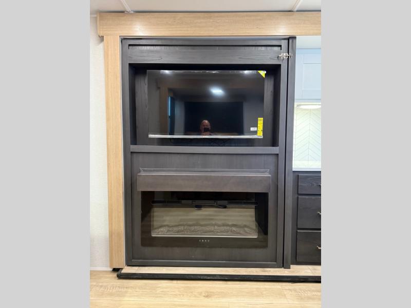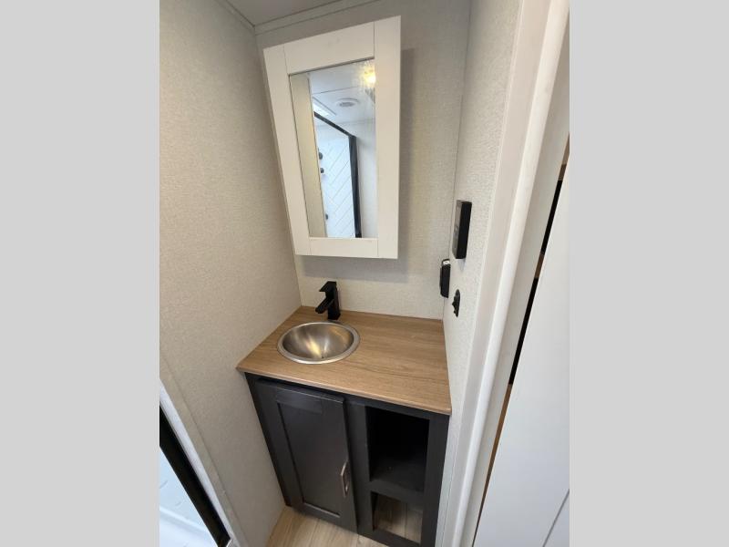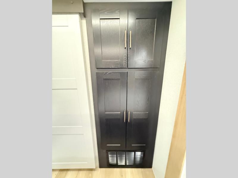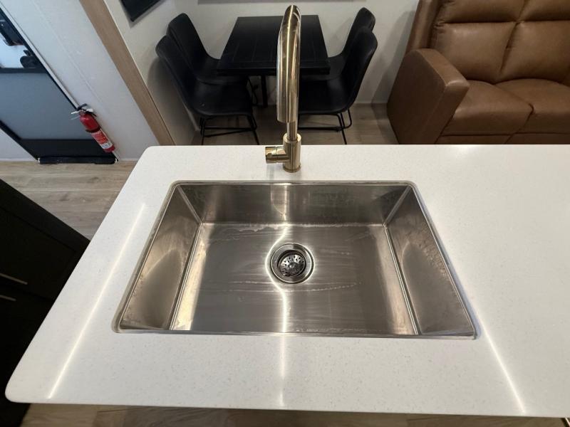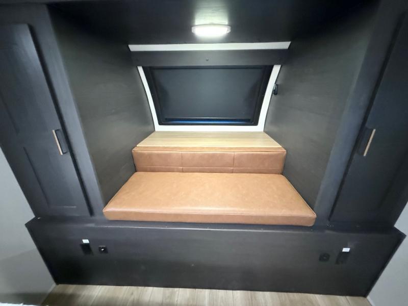When you're ready to escape the everyday life, hitch up this travel trailer and head to the campground! You'll have your own front bedroom with a king bed slide, dual shirt closets with additional storage in between, plus a dresser and a closet with washer and dryer prep. If you have any guests staying over, they can sleep on the rear sofa or the second sofa in the living area. There is also a free-standing table here where you can dine together each morning. A kitchen island provides extra counter space when prepping meals, and the pantry will let you keep food stocked!