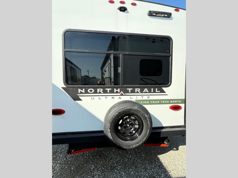 When you choose a North Trail Ultra-Lite travel trailer by Heartland you are choosing comfort, convenience, and quality craftsmanship at its best. The block foam brick insulation, enclosed and heated underbelly, plus Weather Guard thermal protection mean you can camp all year around. Each model features a Wide Trax suspension for a smooth ride, and the backup camera prep and solar prep make camping that much easier if you choose those options. Some of the other exterior features you will appreciate are the outside shower, the power stabilizer jacks and power tongue jack, and the outside speakers to keep the party going. Head inside to find stainless steel appliances, oversized windows, and premium flooring that is tear, slip, mold, mildew and cold crack resistant! You can't beat a North Trail travel trailer. Choose your favorite floorplan today!