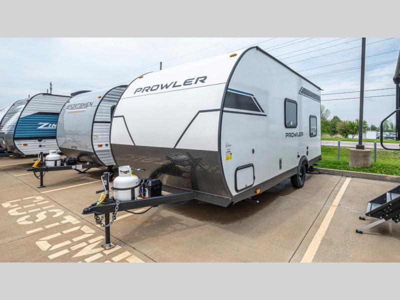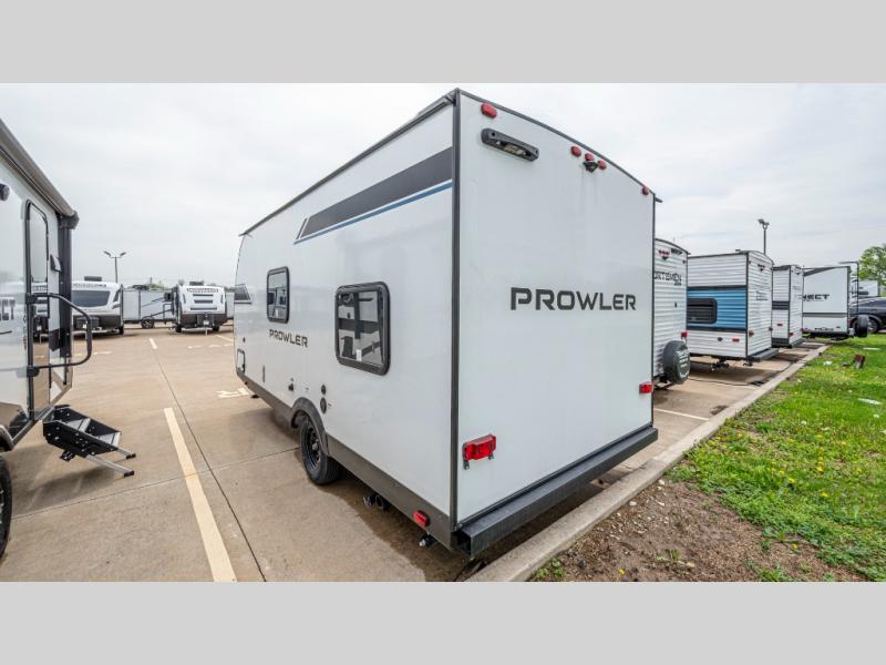 Get ready for comfortable and easy camping with the Prowler travel trailers by Heartland. These models feature durable construction with a performastructure aluminum front wall, a cambered structural steel I-beam frame, and a fully walkable roof. The MEGA bright pass-through storage features 52 cu. ft. of exterior storage with mega sized access doors, LED lights, and a finished interior to keep your gear secure. You'll fall in love with the at-home kitchen the includes Duralast countertops, a residential refrigerator, plus a stainless steel double bowl undermount sink for easy clean-up. These travel trailers also feature panoramic windows, an EZ clean interior, USB charging ports throughout, and many more comforts! Don't let the Prowler travel trailers slip away. Don't let the Prowler travel trailers slip away. Choose your favorite floorplan today!