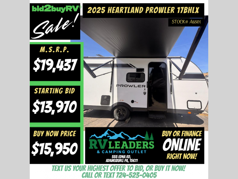 New 2025 Heartland Prowler 17BHLX Travel Trailer