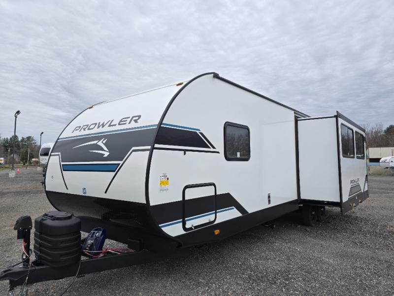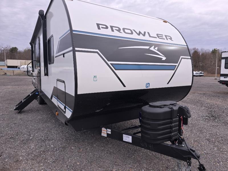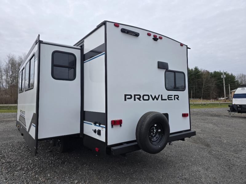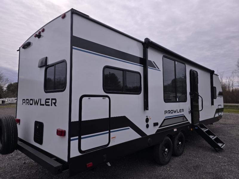Get ready for comfortable and easy camping with the Prowler travel trailers by Heartland. These models feature durable construction with a performastructure aluminum front wall, a cambered structural steel I-beam frame, and a fully walkable roof. The MEGA bright pass-through storage features 52 cu. ft. of exterior storage with mega sized access doors, LED lights, and a finished interior to keep your gear secure. You'll fall in love with the at-home kitchen the includes Duralast countertops, a residential refrigerator, plus a stainless steel double bowl undermount sink for easy clean-up. These travel trailers also feature panoramic windows, an EZ clean interior, USB charging ports throughout, and many more comforts! Don't let the Prowler travel trailers slip away. Don't let the Prowler travel trailers slip away. Choose your favorite floorplan today!