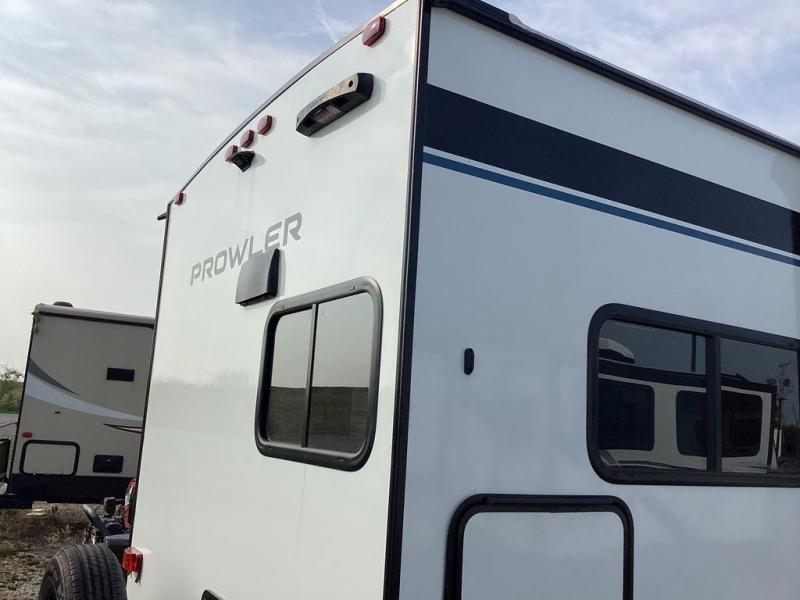 Get ready for comfortable and easy camping with the Prowler travel trailers by Heartland. These models feature durable construction with a performastructure aluminum front wall, a cambered structural steel I-beam frame, and a fully walkable roof. The MEGA bright pass-through storage features 52 cu. ft. of exterior storage with mega sized access doors, LED lights, and a finished interior to keep your gear secure. You'll fall in love with the at-home kitchen the includes Duralast countertops, a residential refrigerator, plus a stainless steel double bowl undermount sink for easy clean-up. These travel trailers also feature panoramic windows, an EZ clean interior, USB charging ports throughout, and many more comforts! Don't let the Prowler travel trailers slip away. Don't let the Prowler travel trailers slip away. Choose your favorite floorplan today!