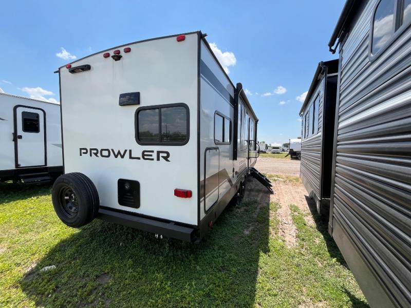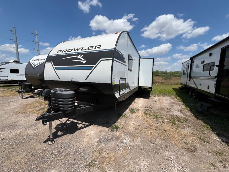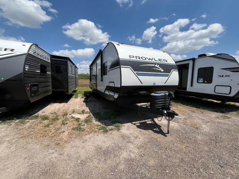 Get ready for comfortable and easy camping with the Prowler travel trailers by Heartland. These models feature durable construction with a performastructure aluminum front wall, a cambered structural steel I-beam frame, and a fully walkable roof. The MEGA bright pass-through storage features 52 cu. ft. of exterior storage with mega sized access doors, LED lights, and a finished interior to keep your gear secure. You'll fall in love with the at-home kitchen the includes Duralast countertops, a residential refrigerator, plus a stainless steel double bowl undermount sink for easy clean-up. These travel trailers also feature panoramic windows, an EZ clean interior, USB charging ports throughout, and many more comforts! Don't let the Prowler travel trailers slip away. Don't let the Prowler travel trailers slip away. Choose your favorite floorplan today!