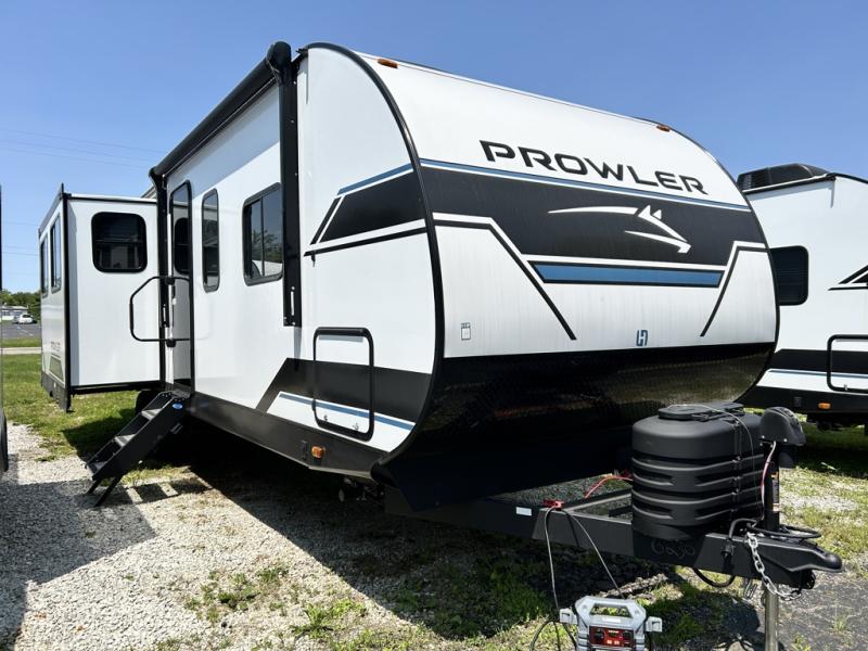 Get ready for comfortable and easy camping with the Prowler travel trailers by Heartland. These models feature durable construction with a performastructure aluminum front wall, a cambered structural steel I-beam frame, and a fully walkable roof. The MEGA bright pass-through storage features 52 cu. ft. of exterior storage with mega sized access doors, LED lights, and a finished interior to keep your gear secure. You'll fall in love with the at-home kitchen the includes Duralast countertops, a residential refrigerator, plus a stainless steel double bowl undermount sink for easy clean-up. These travel trailers also feature panoramic windows, an EZ clean interior, USB charging ports throughout, and many more comforts! Don't let the Prowler travel trailers slip away. Don't let the Prowler travel trailers slip away. Choose your favorite floorplan today!