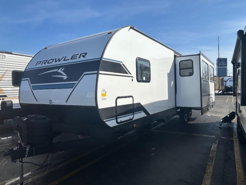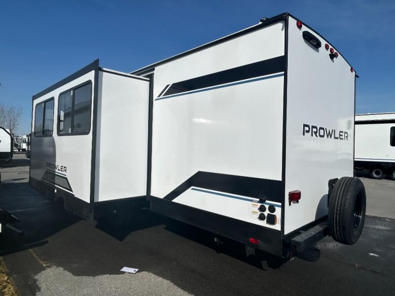 Get ready for comfortable and easy camping with the Prowler travel trailers by Heartland. These models feature durable construction with a performastructure aluminum front wall, a cambered structural steel I-beam frame, and a fully walkable roof. The MEGA bright pass-through storage features 52 cu. ft. of exterior storage with mega sized access doors, LED lights, and a finished interior to keep your gear secure. You'll fall in love with the at-home kitchen the includes Duralast countertops, a residential refrigerator, plus a stainless steel double bowl undermount sink for easy clean-up. These travel trailers also feature panoramic windows, an EZ clean interior, USB charging ports throughout, and many more comforts! Don't let the Prowler travel trailers slip away. Don't let the Prowler travel trailers slip away. Choose your favorite floorplan today!