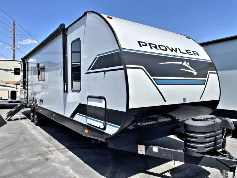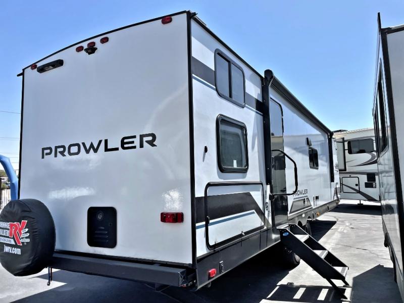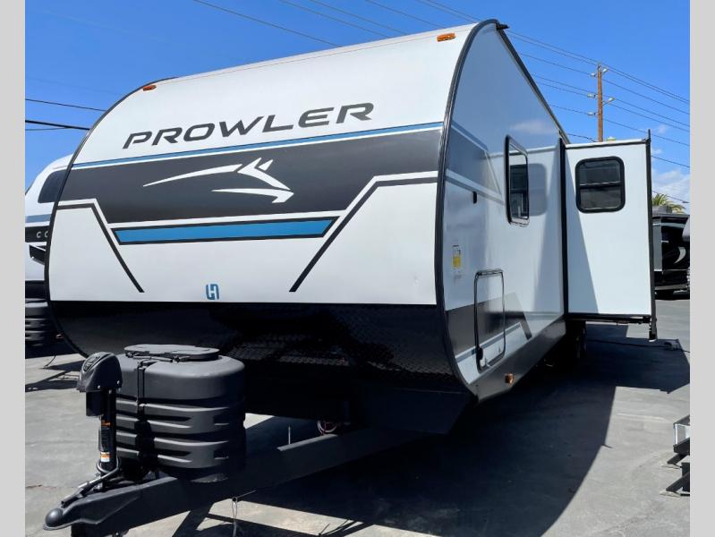 Get ready for comfortable and easy camping with the Prowler travel trailers by Heartland. These models feature durable construction with a performastructure aluminum front wall, a cambered structural steel I-beam frame, and a fully walkable roof. The MEGA bright pass-through storage features 52 cu. ft. of exterior storage with mega sized access doors, LED lights, and a finished interior to keep your gear secure. You'll fall in love with the at-home kitchen the includes Duralast countertops, a residential refrigerator, plus a stainless steel double bowl undermount sink for easy clean-up. These travel trailers also feature panoramic windows, an EZ clean interior, USB charging ports throughout, and many more comforts! Don't let the Prowler travel trailers slip away. Don't let the Prowler travel trailers slip away. Choose your favorite floorplan today!