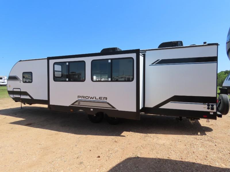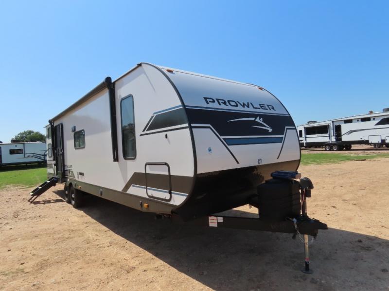 Get ready for comfortable and easy camping with the Prowler travel trailers by Heartland. These models feature durable construction with a performastructure aluminum front wall, a cambered structural steel I-beam frame, and a fully walkable roof. The MEGA bright pass-through storage features 52 cu. ft. of exterior storage with mega sized access doors, LED lights, and a finished interior to keep your gear secure. You'll fall in love with the at-home kitchen the includes Duralast countertops, a residential refrigerator, plus a stainless steel double bowl undermount sink for easy clean-up. These travel trailers also feature panoramic windows, an EZ clean interior, USB charging ports throughout, and many more comforts! Don't let the Prowler travel trailers slip away. Don't let the Prowler travel trailers slip away. Choose your favorite floorplan today!