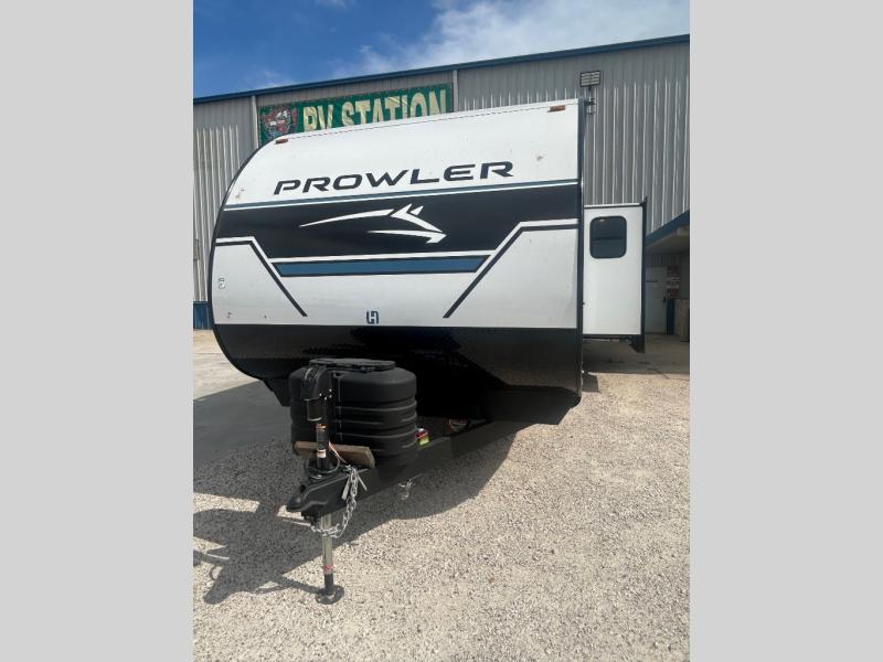 Get ready for comfortable and easy camping with the Prowler travel trailers by Heartland. These models feature durable construction with a performastructure aluminum front wall, a cambered structural steel I-beam frame, and a fully walkable roof. The MEGA bright pass-through storage features 52 cu. ft. of exterior storage with mega sized access doors, LED lights, and a finished interior to keep your gear secure. You'll fall in love with the at-home kitchen the includes Duralast countertops, a residential refrigerator, plus a stainless steel double bowl undermount sink for easy clean-up. These travel trailers also feature panoramic windows, an EZ clean interior, USB charging ports throughout, and many more comforts! Don't let the Prowler travel trailers slip away. Don't let the Prowler travel trailers slip away. Choose your favorite floorplan today!