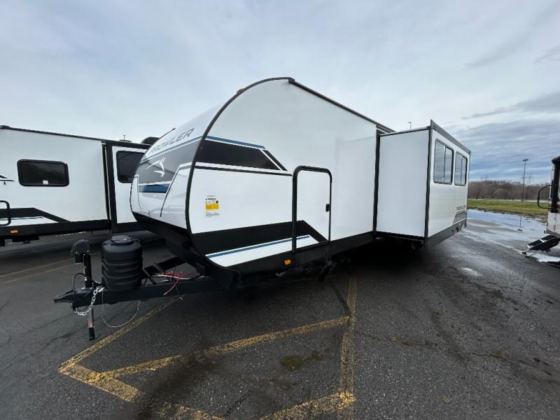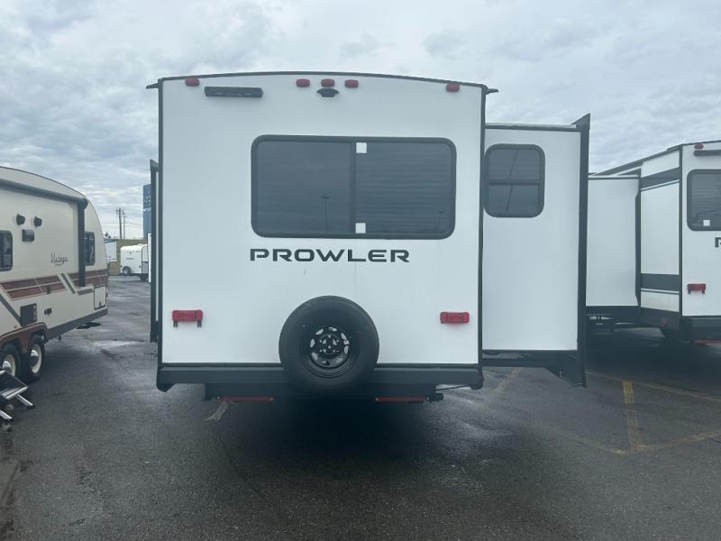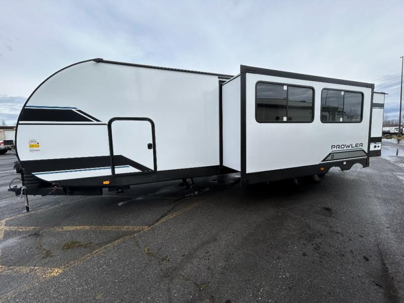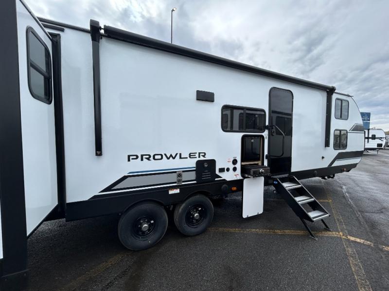 Get ready for comfortable and easy camping with the Prowler travel trailers by Heartland. These models feature durable construction with a performastructure aluminum front wall, a cambered structural steel I-beam frame, and a fully walkable roof. The MEGA bright pass-through storage features 52 cu. ft. of exterior storage with mega sized access doors, LED lights, and a finished interior to keep your gear secure. You'll fall in love with the at-home kitchen the includes Duralast countertops, a residential refrigerator, plus a stainless steel double bowl undermount sink for easy clean-up. These travel trailers also feature panoramic windows, an EZ clean interior, USB charging ports throughout, and many more comforts! Don't let the Prowler travel trailers slip away. Don't let the Prowler travel trailers slip away. Choose your favorite floorplan today!