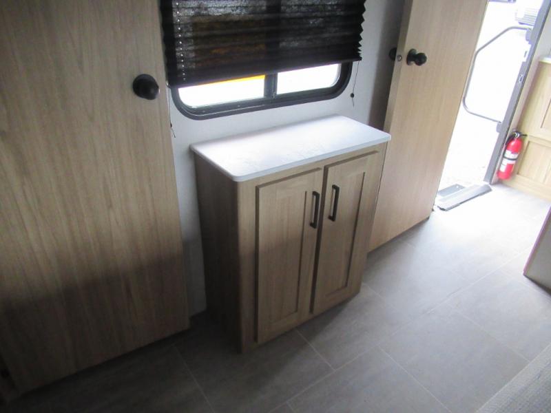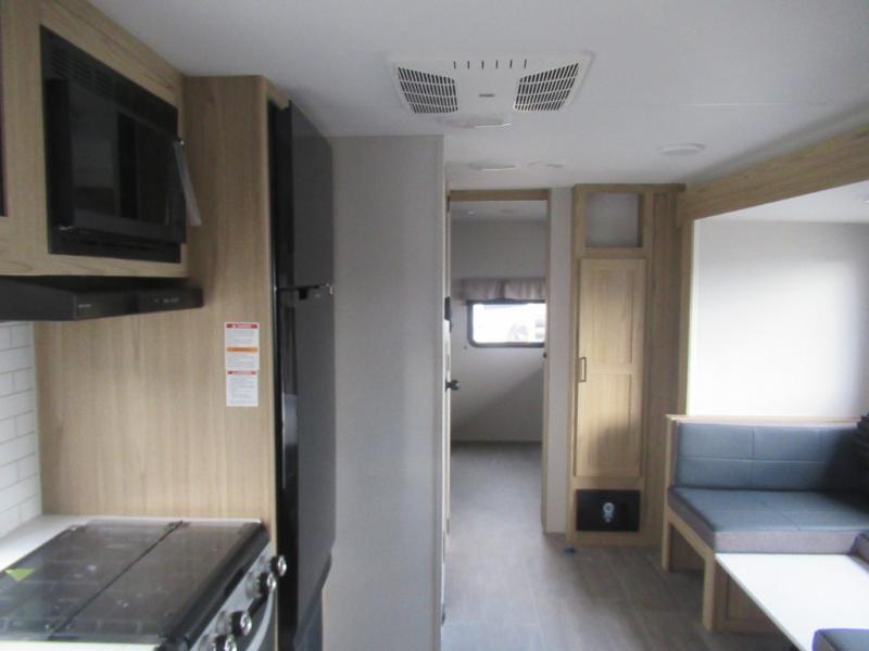 This spacious travel trailer will be perfect for extended stays or weekend getaways! The front private bedroom is sure to feel like home with its queen bed, dresser, wardrobe, plus washer and dryer prep for the option to add those appliances. Your guests can claim the rear private bunkhouse that includes bunk beds and a sofa plus a slide out for more floor space. The third slide out is found in the combined kitchen and living room, and here you'll enjoy the sofa and U-shaped dinette. There is also a full bath onboard, along with a full kitchen inside and an exterior kitchen, complete with a griddle, mini fridge, and sink!
