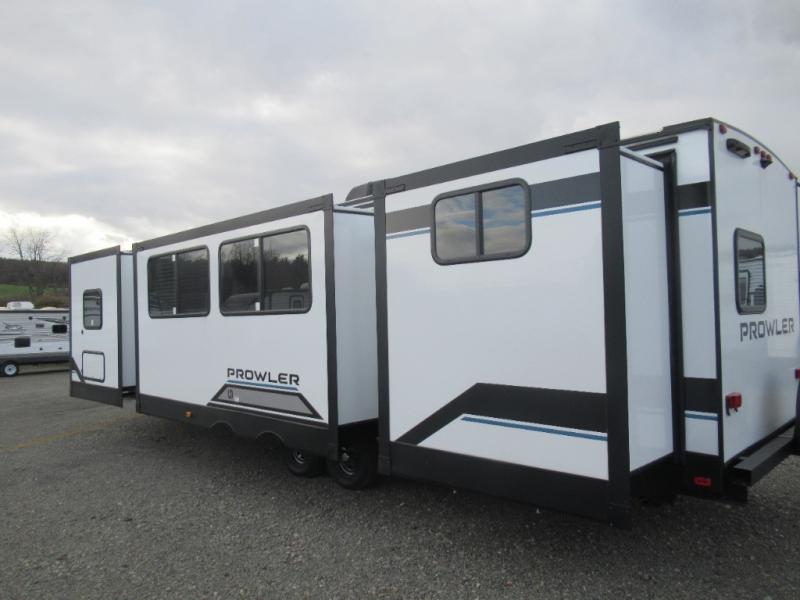 Get ready for comfortable and easy camping with the Prowler travel trailers by Heartland. These models feature durable construction with a performastructure aluminum front wall, a cambered structural steel I-beam frame, and a fully walkable roof. The MEGA bright pass-through storage features 52 cu. ft. of exterior storage with mega sized access doors, LED lights, and a finished interior to keep your gear secure. You'll fall in love with the at-home kitchen the includes Duralast countertops, a residential refrigerator, plus a stainless steel double bowl undermount sink for easy clean-up. These travel trailers also feature panoramic windows, an EZ clean interior, USB charging ports throughout, and many more comforts! Don't let the Prowler travel trailers slip away. Don't let the Prowler travel trailers slip away. Choose your favorite floorplan today!