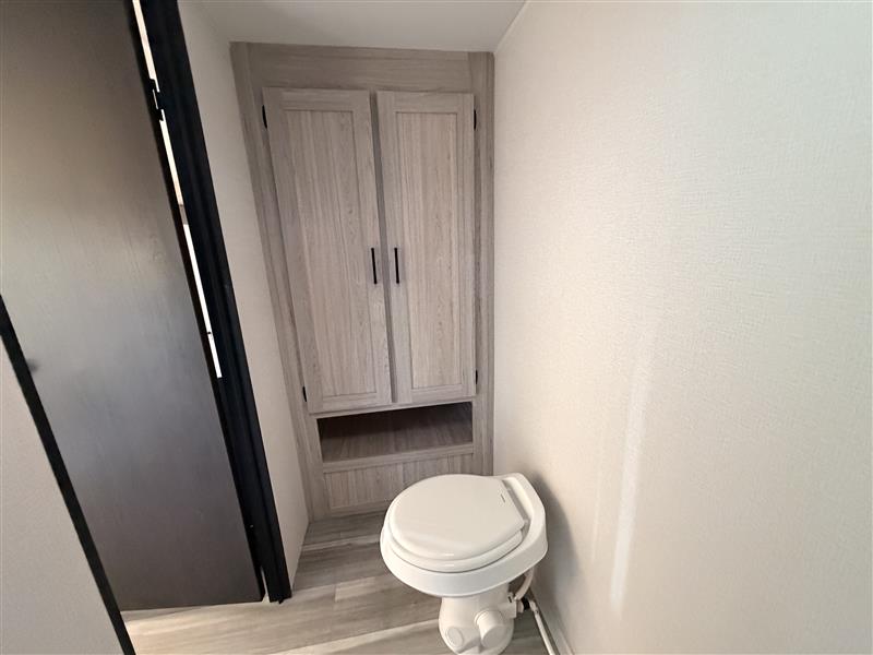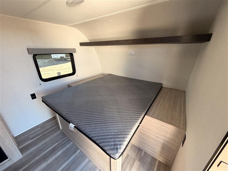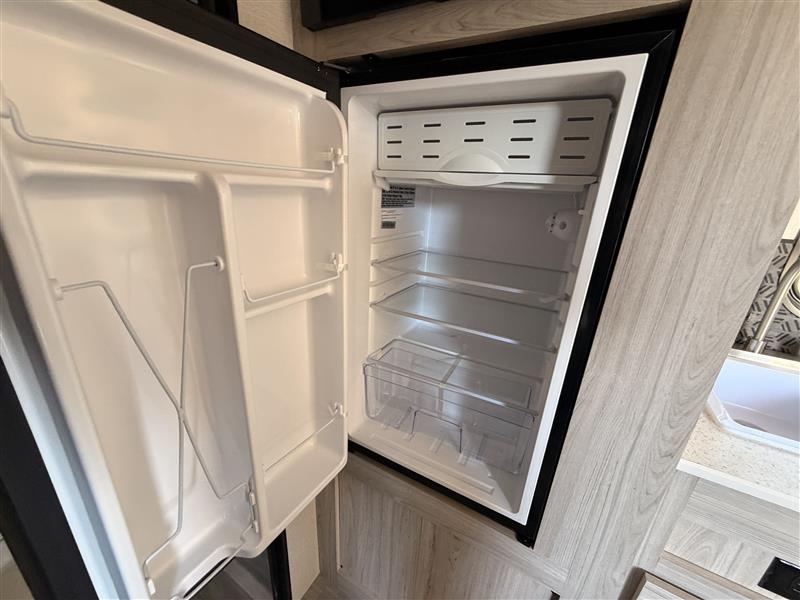 Lightweight towing and cozy camping is possible with this travel trailer! You will love having your own front queen bed to sleep on each night. A booth dinette provides a place to dine, play board games, and even sleep another guest if needed. The chef of your group can whip up meals on the two burner cooktop, and there is a 3.3 cu. ft. 12V residential refrigerator to keep food fresh. This model also includes a private bath with a shower and toilet so you don't have to use the camp's facilities at night!