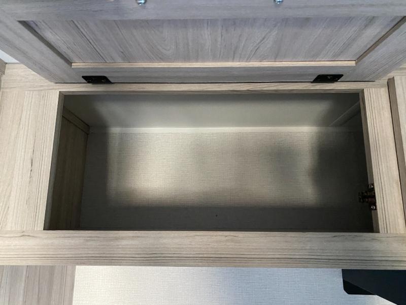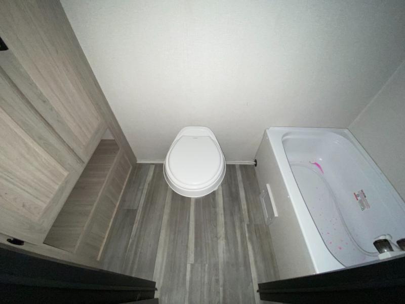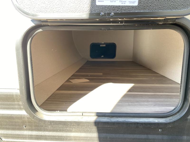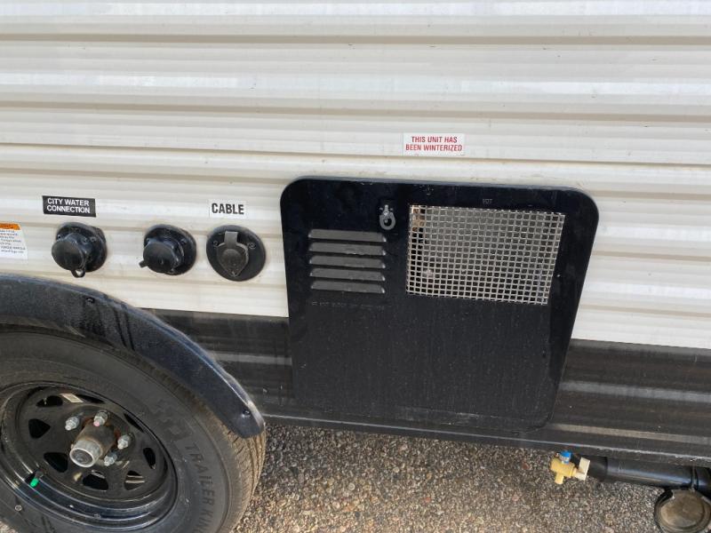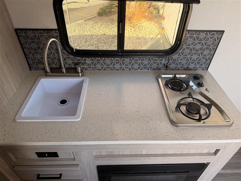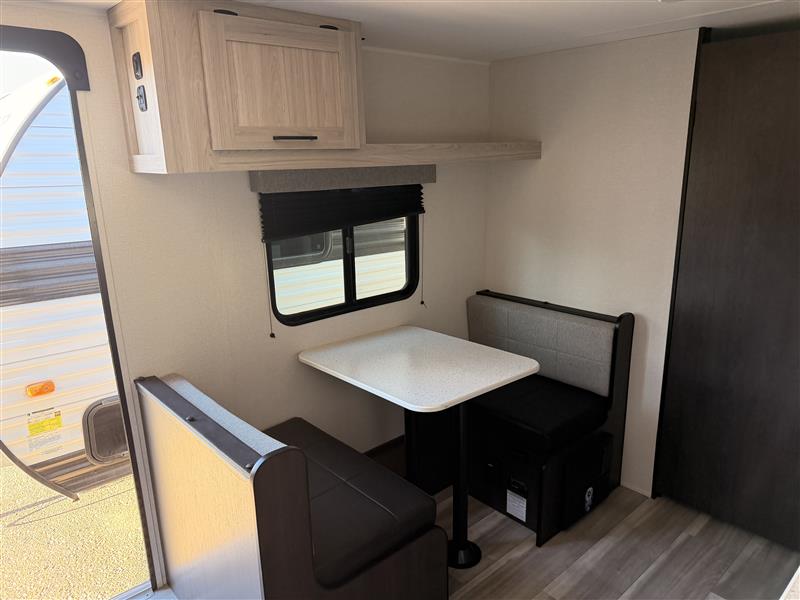 Lightweight towing and cozy camping is possible with this travel trailer! You will love having your own front queen bed to sleep on each night. A booth dinette provides a place to dine, play board games, and even sleep another guest if needed. The chef of your group can whip up meals on the two burner cooktop, and there is a 3.3 cu. ft. 12V residential refrigerator to keep food fresh. This model also includes a private bath with a shower and toilet so you don't have to use the camp's facilities at night!