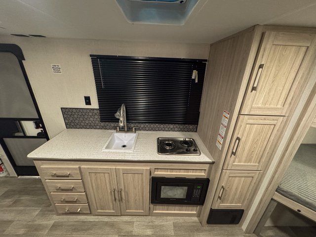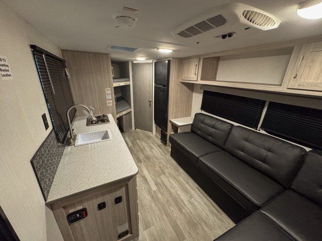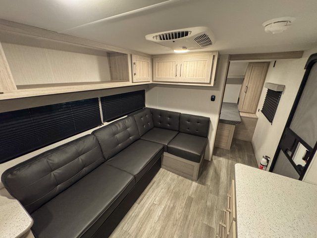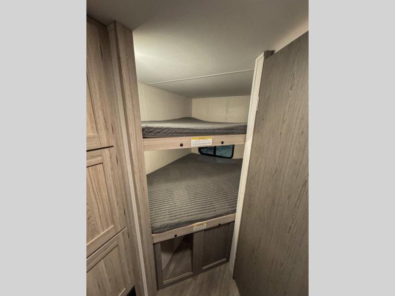 The 2511BHX is designed to accommodate everyone comfortably. The front queen bed provides a relaxing place to rest, while the double-size bunk beds in the rear are perfect for kids or guests. The L-shaped sofa also provides a comfortable spot for relaxing, dining, or planning the next day’s adventure.