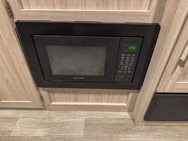 Outside, you’ll enjoy the power awning that creates a shaded outdoor space for relaxing. The large pass-through storage compartment provides plenty of room for camping gear, fishing poles, chairs, and more.