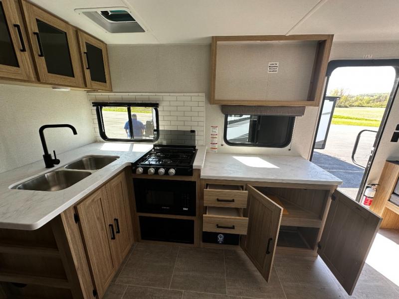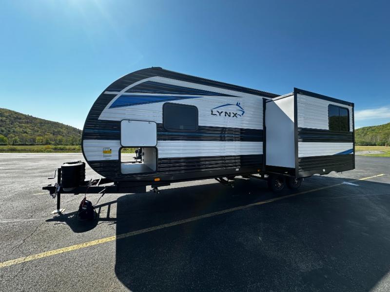 Get ready for comfortable and easy camping with the Prowler Lynx travel trailers by Heartland. Each model includes full bath and kitchen amenities, comfortable seating and sleeping spaces, and plenty of storage spaces that will help you keep camp gear and personal belongings clean and neat! The power awning with an LED light strip outdoors will provide shade when you need it, and the LED interior lights will keep your space well lit. These units also include USB ports to keep your electronics charge, a systems monitor panel, night shades in the living area and bedroom, plus many more conveniences to make life at the campground easier than ever!