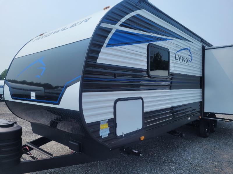 Get ready for comfortable and easy camping with the Prowler Lynx travel trailers by Heartland. Each model includes full bath and kitchen amenities, comfortable seating and sleeping spaces, and plenty of storage spaces that will help you keep camp gear and personal belongings clean and neat! The power awning with an LED light strip outdoors will provide shade when you need it, and the LED interior lights will keep your space well lit. These units also include USB ports to keep your electronics charge, a systems monitor panel, night shades in the living area and bedroom, plus many more conveniences to make life at the campground easier than ever!