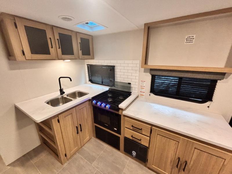 Get ready for comfortable and easy camping with the Prowler Lynx travel trailers by Heartland. Each model includes full bath and kitchen amenities, comfortable seating and sleeping spaces, and plenty of storage spaces that will help you keep camp gear and personal belongings clean and neat! The power awning with an LED light strip outdoors will provide shade when you need it, and the LED interior lights will keep your space well lit. These units also include USB ports to keep your electronics charge, a systems monitor panel, night shades in the living area and bedroom, plus many more conveniences to make life at the campground easier than ever!