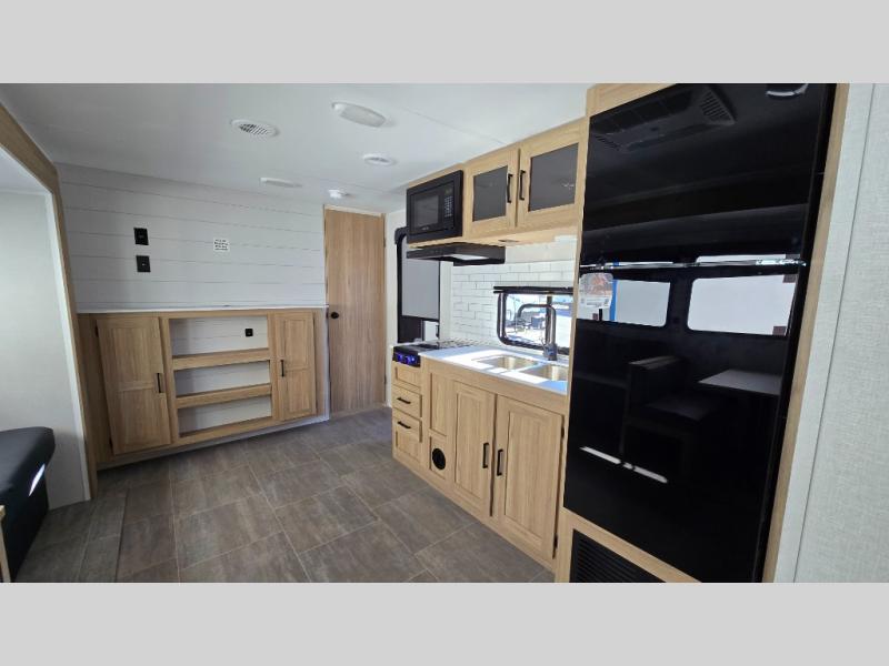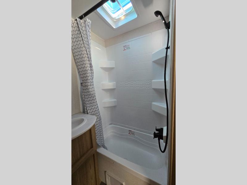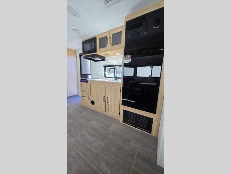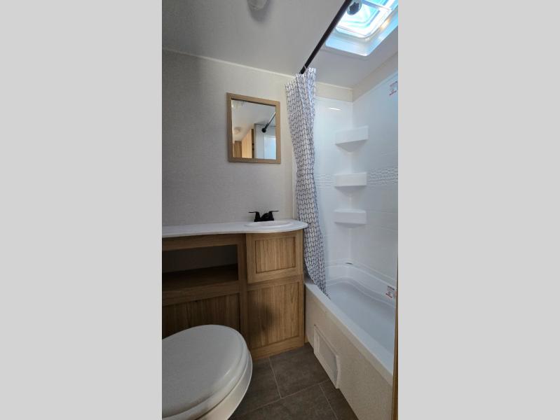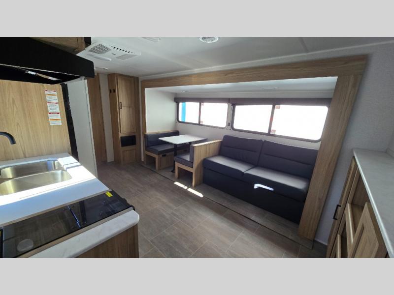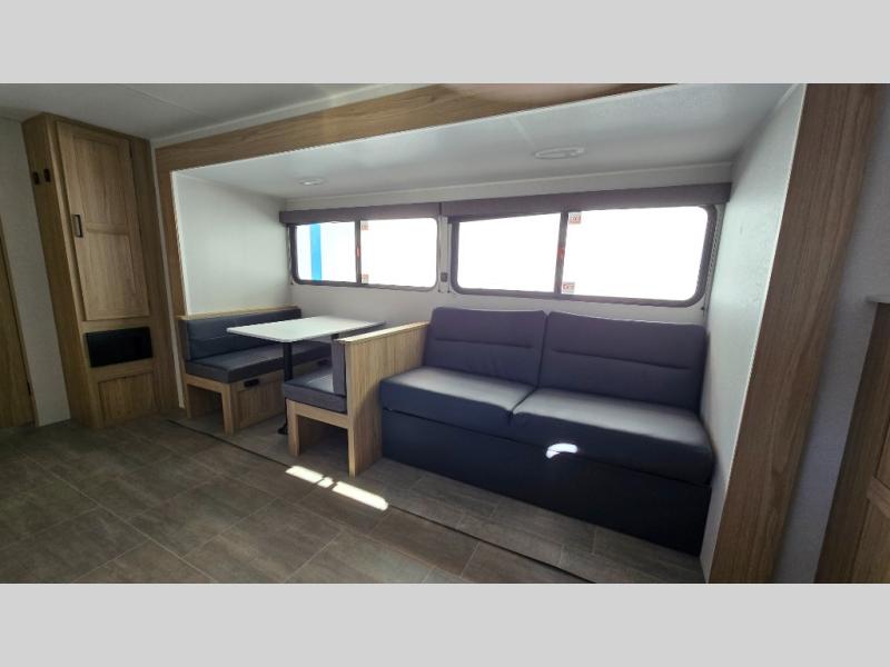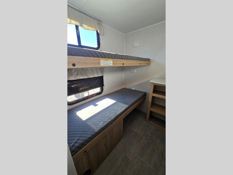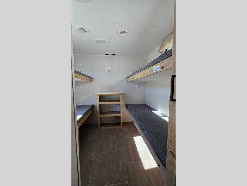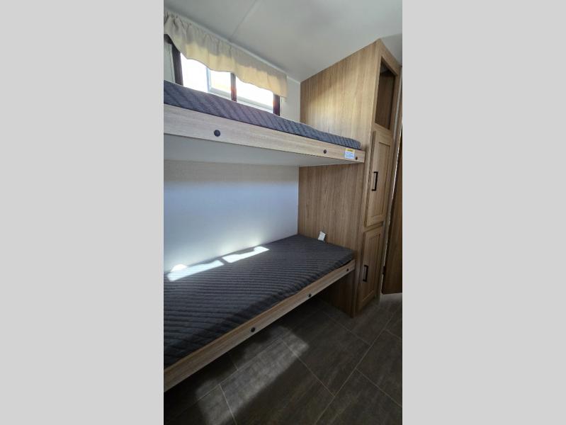 - Sleeping Arrangements: This model comes with a private bedroom equipped with a queen-size bed, and additional sleeping areas in the form of bunk beds, a convertible dinette, and a sofa sleeper, making it great for families or larger groups.