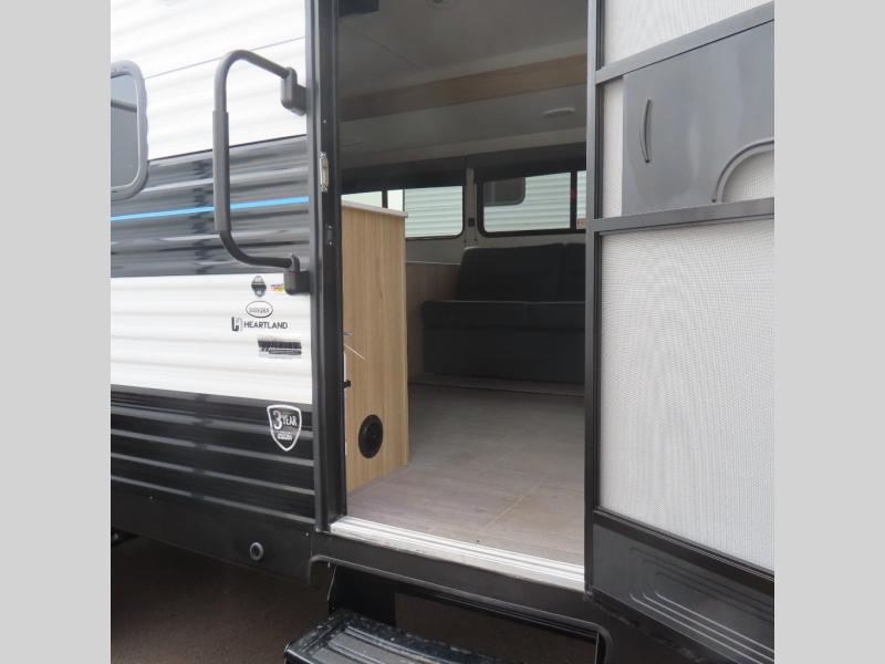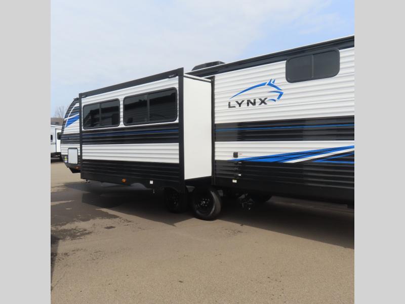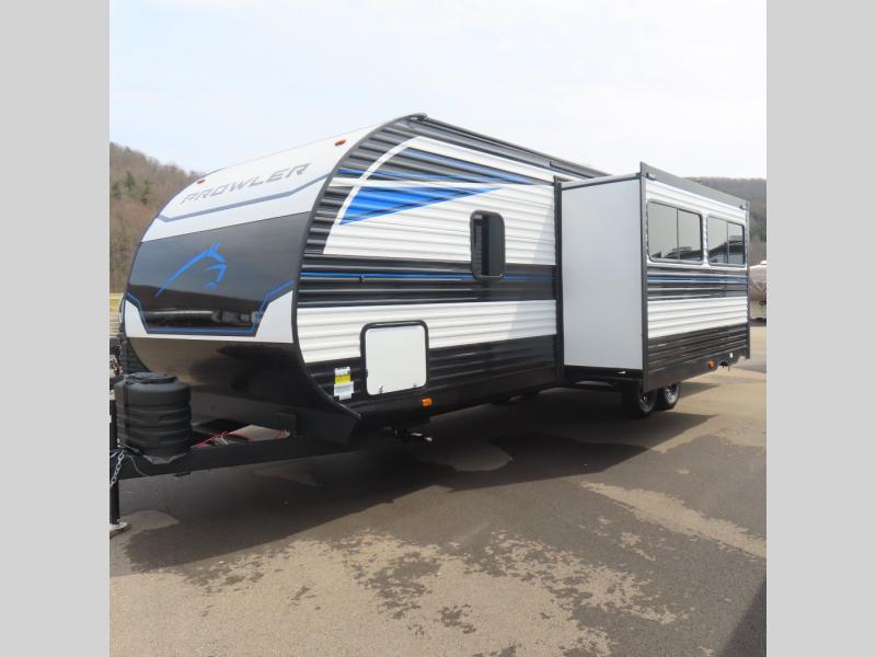 Get ready for comfortable and easy camping with the Prowler Lynx travel trailers by Heartland. Each model includes full bath and kitchen amenities, comfortable seating and sleeping spaces, and plenty of storage spaces that will help you keep camp gear and personal belongings clean and neat! The power awning with an LED light strip outdoors will provide shade when you need it, and the LED interior lights will keep your space well lit. These units also include USB ports to keep your electronics charge, a systems monitor panel, night shades in the living area and bedroom, plus many more conveniences to make life at the campground easier than ever!