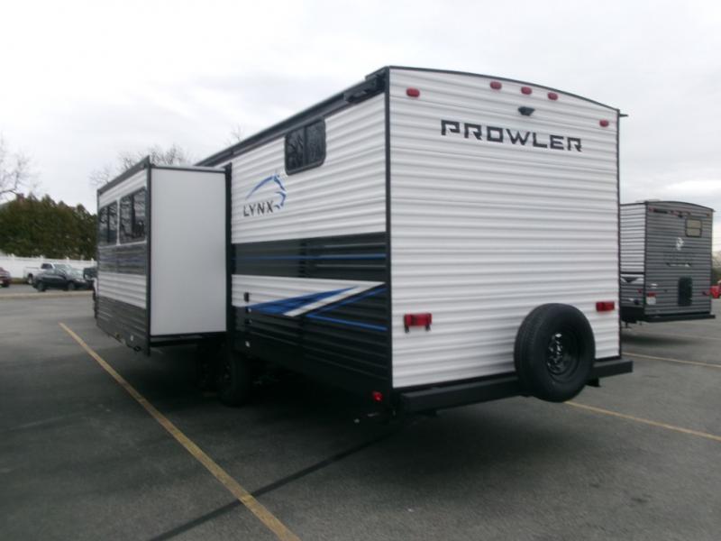 Get ready for comfortable and easy camping with the Prowler Lynx travel trailers by Heartland. Each model includes full bath and kitchen amenities, comfortable seating and sleeping spaces, and plenty of storage spaces that will help you keep camp gear and personal belongings clean and neat! The power awning with an LED light strip outdoors will provide shade when you need it, and the LED interior lights will keep your space well lit. These units also include USB ports to keep your electronics charge, a systems monitor panel, night shades in the living area and bedroom, plus many more conveniences to make life at the campground easier than ever!