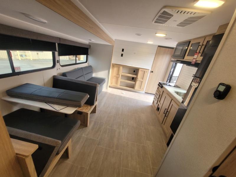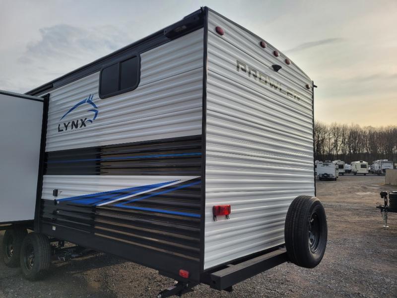 Get ready for comfortable and easy camping with the Prowler Lynx travel trailers by Heartland. Each model includes full bath and kitchen amenities, comfortable seating and sleeping spaces, and plenty of storage spaces that will help you keep camp gear and personal belongings clean and neat! The power awning with an LED light strip outdoors will provide shade when you need it, and the LED interior lights will keep your space well lit. These units also include USB ports to keep your electronics charge, a systems monitor panel, night shades in the living area and bedroom, plus many more conveniences to make life at the campground easier than ever!