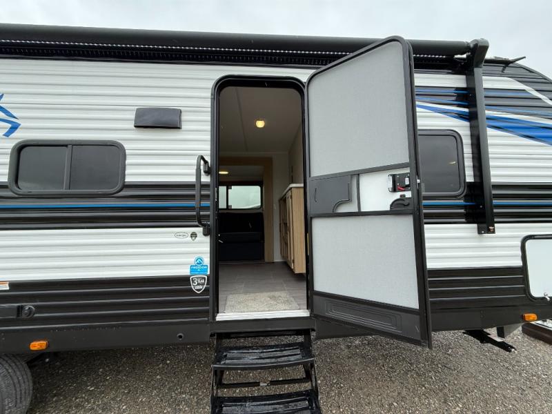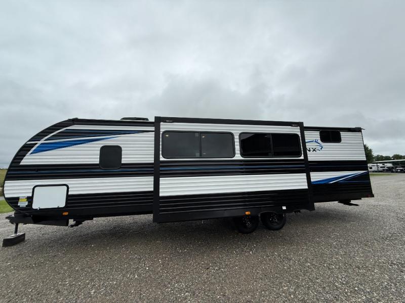 Get ready for comfortable and easy camping with the Prowler Lynx travel trailers by Heartland. Each model includes full bath and kitchen amenities, comfortable seating and sleeping spaces, and plenty of storage spaces that will help you keep camp gear and personal belongings clean and neat! The power awning with an LED light strip outdoors will provide shade when you need it, and the LED interior lights will keep your space well lit. These units also include USB ports to keep your electronics charge, a systems monitor panel, night shades in the living area and bedroom, plus many more conveniences to make life at the campground easier than ever!