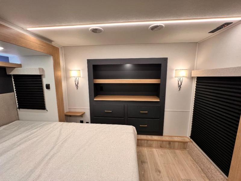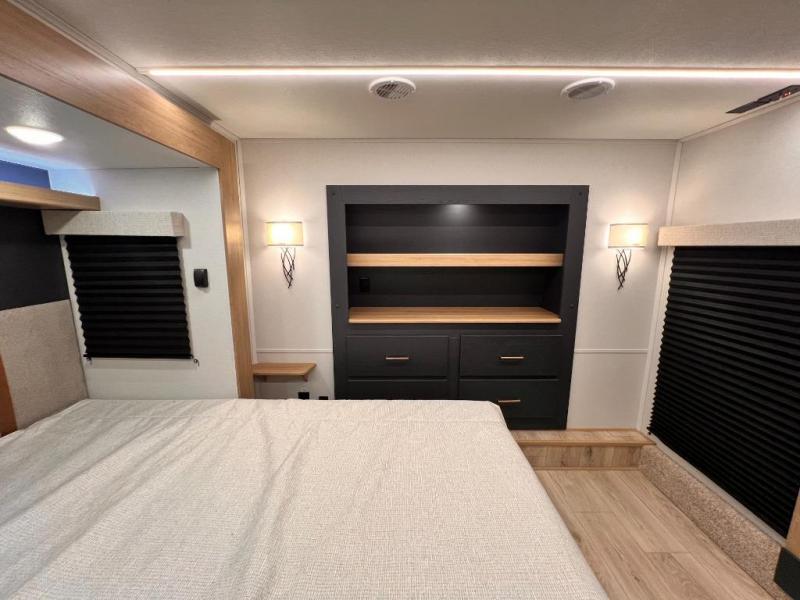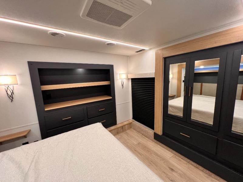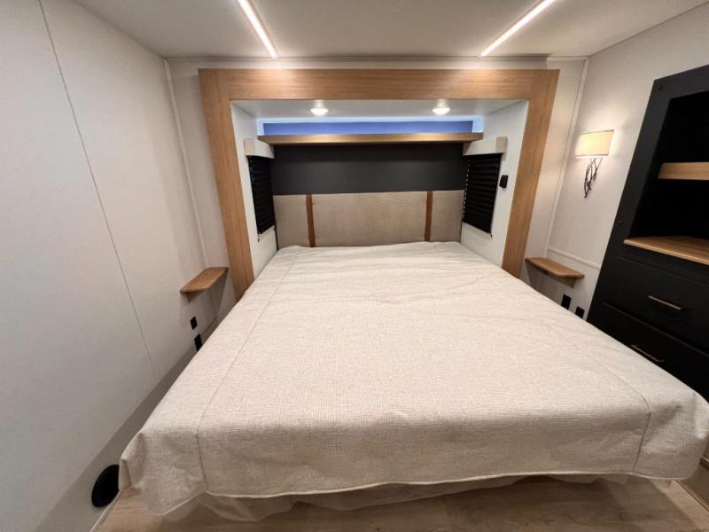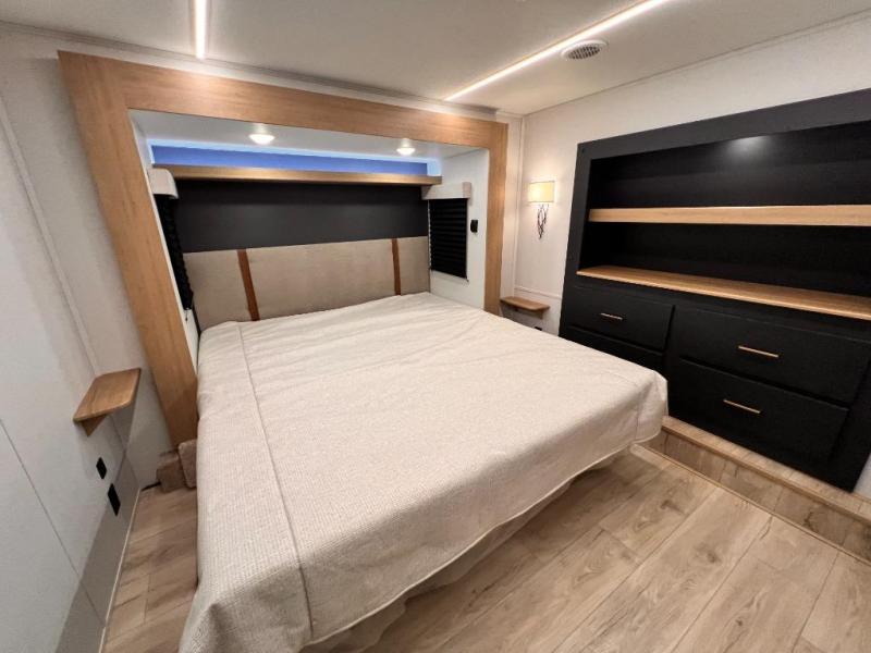 - Exterior Speakers, TV Antenna w/Signal Booster, Satellite Prep, Night Shades, LED Lights, Memory Foam King Mattress,