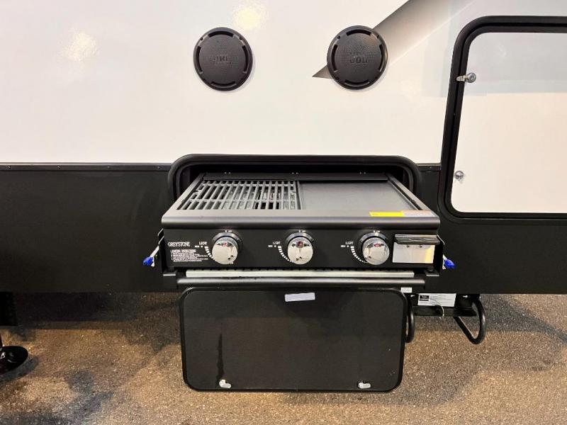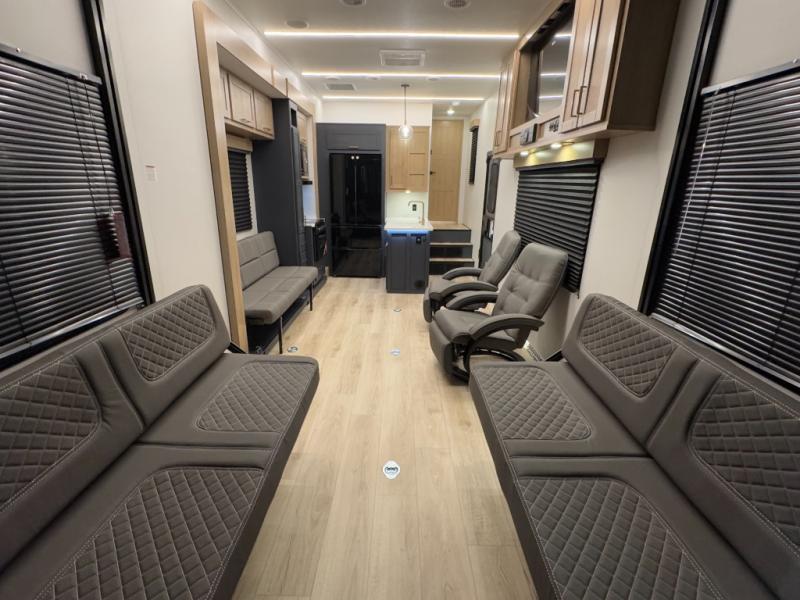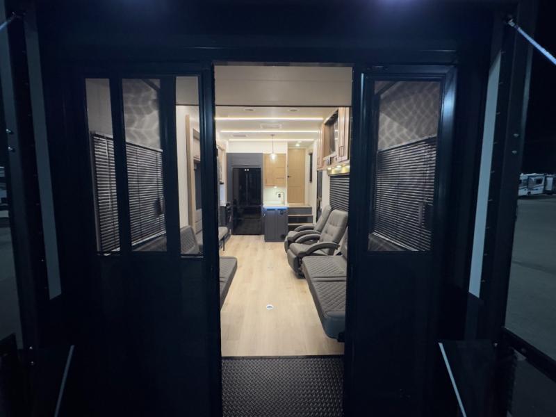 - Baggage Doors w/Slam Latches, Heated Enclosed Underbelly, Solar Prep, Rear & Side Camera Prep, 8' Weather Proof