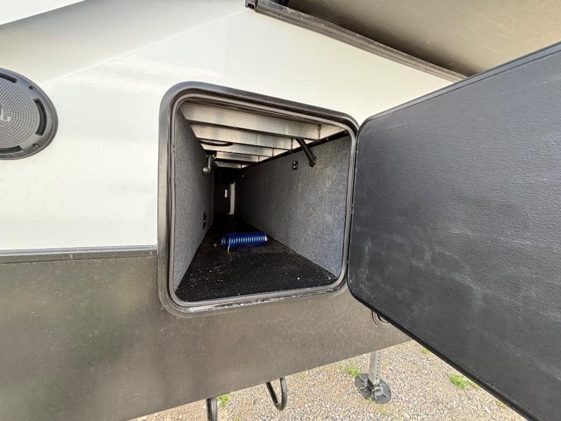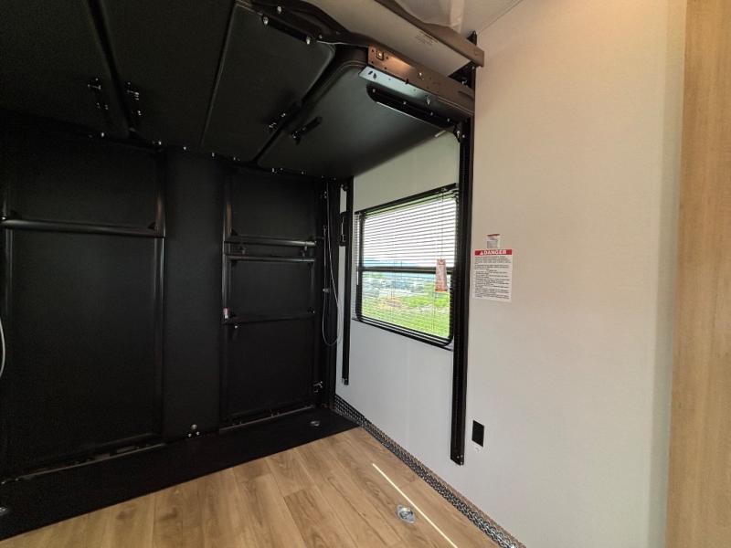 The 16-foot garage offers room for ATVs, UTVs, motorcycles, or other gear and easily converts into an extra living and sleeping area with power beds, convertible sofas, and access to the rear patio deck. Whether hauling toys or entertaining guests, the Torque 316 delivers flexible space.