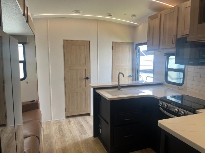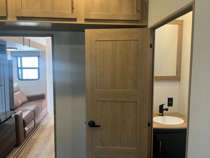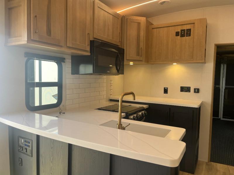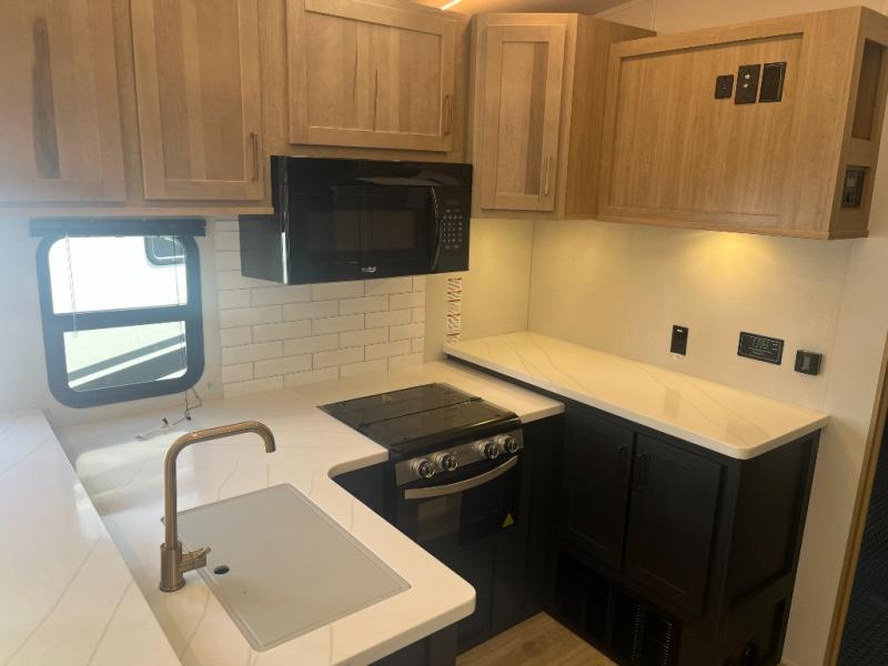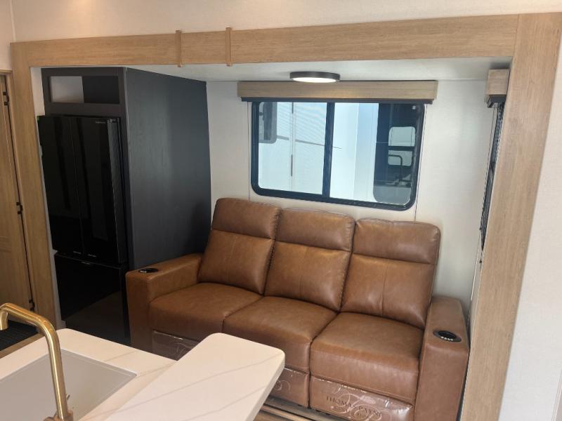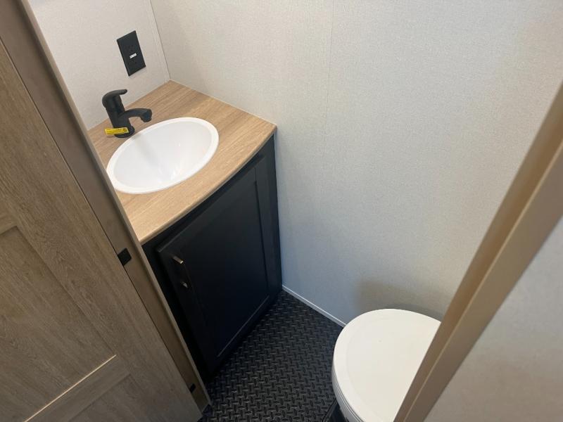 This toy hauler is decked out in features you will love having! The bath and a half makes life easier at the campground and the dual entry doors create a smooth flow of traffic in and out of the unit. Load your toys up with the 2,500 lb. ramp door into the 13' 6" garage area and set up the power queen bed above the sofa with a dinette once you have arrived to your destination. Keep everyone's bellies full with the three burner cooktop and 10.7 cu. ft. refrigerator, plus there is an outdoor kitchen to breathe in some fresh air while you cook. The dual entry bathroom is easy for everyone to access, especially those staying in the master suite with a king bed slide to lay their head on at night!