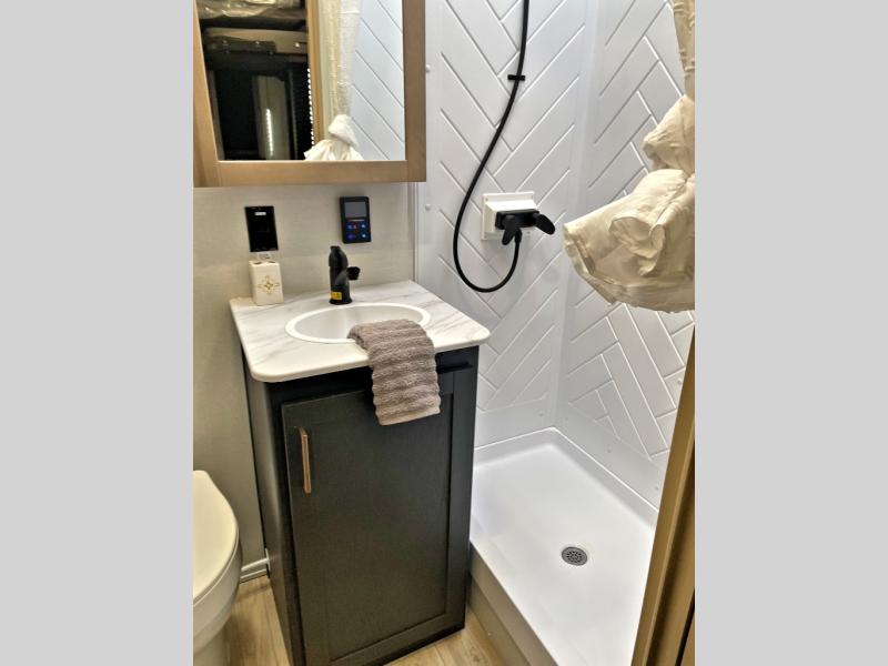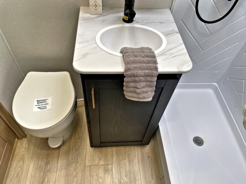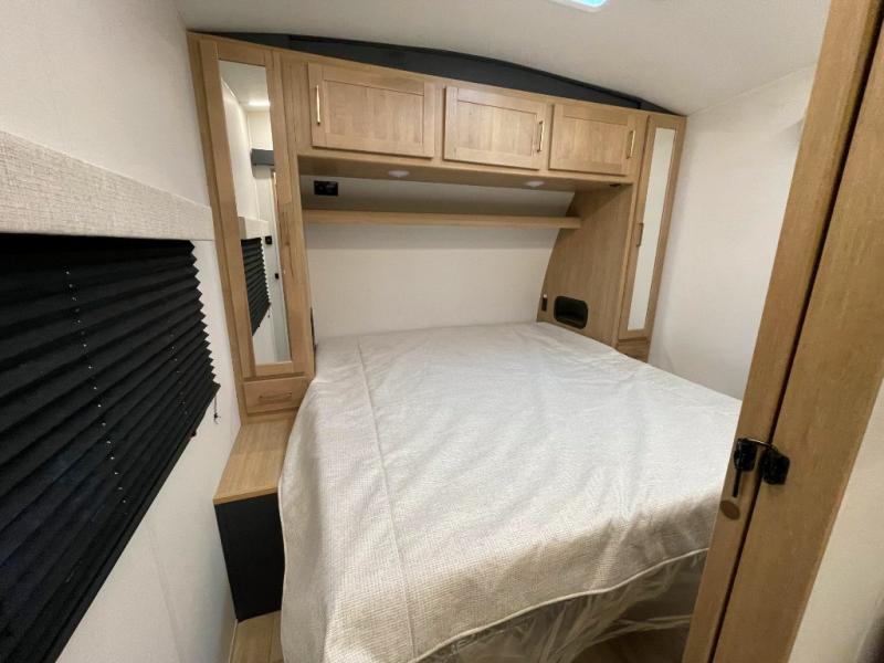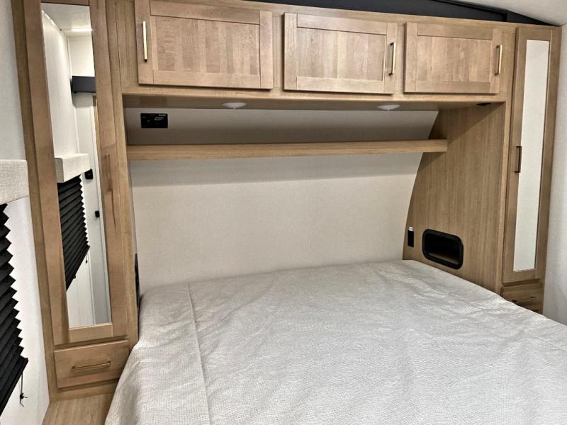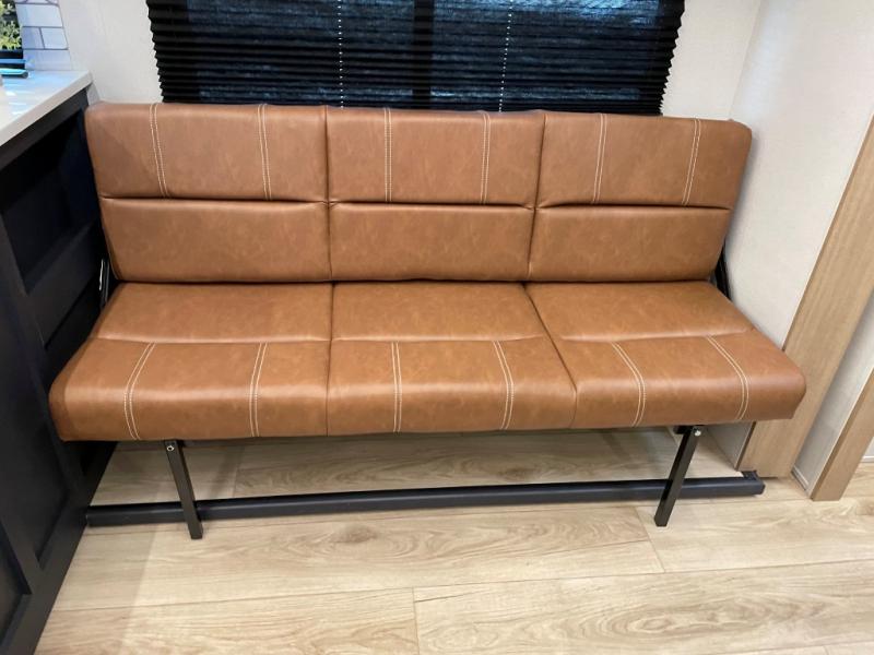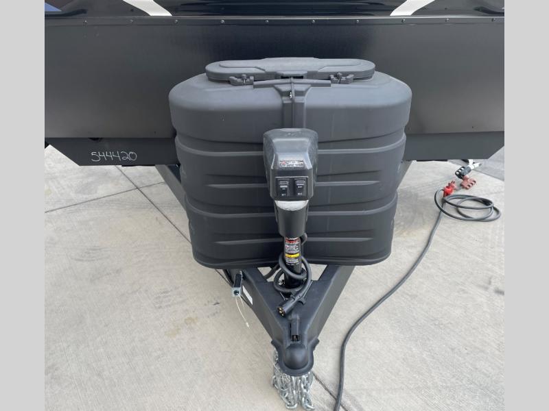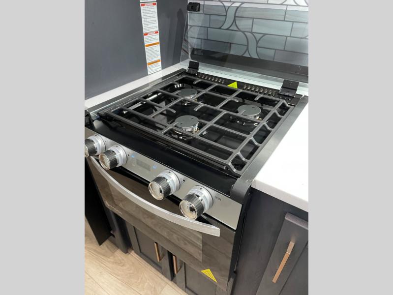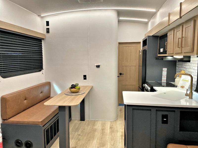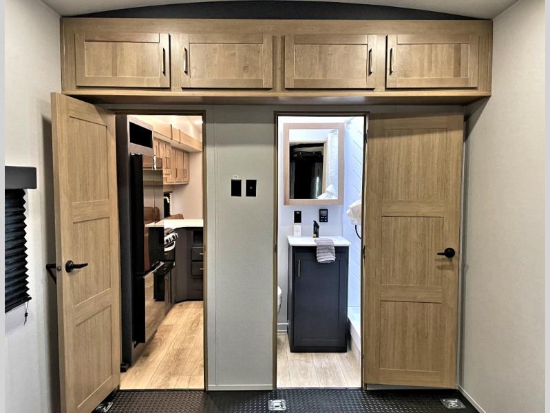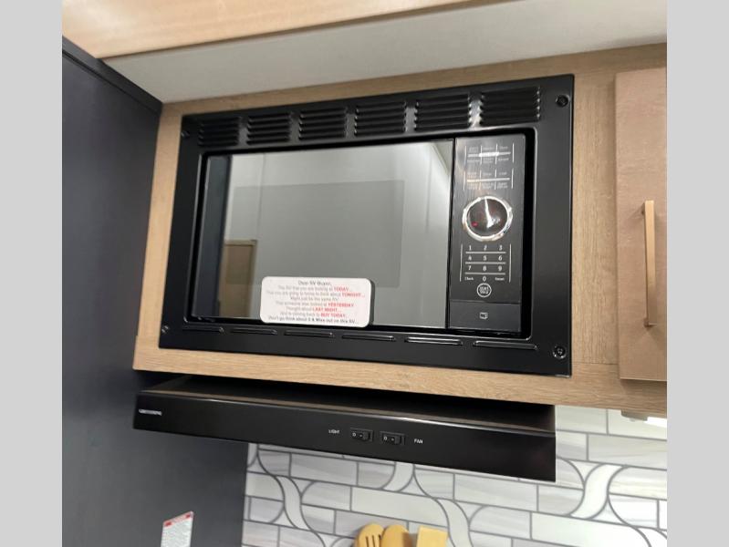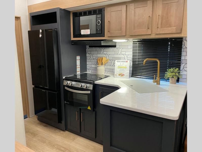 Bring the whole gang with you and your off-road toys in this toy hauler with a 13' garage area! Once your toys are unloaded, you can set up the power queen bed above the sofa with a dinette, plus there is one of the dual entry doors to the unit. You can prepare home cooked meals with the three burner cooktop and then eat them either in the garage dinette or the one sided booth dinette seating with a table across from the kitchen. After dinner, let your stomach settle on either the sofa or the theater seating then freshen up in the dual entry bathroom with the shower that has a skylight above it for added natural lighting. Enjoy a good night's rest each night on the king bed in the front private bedroom!