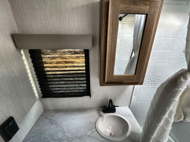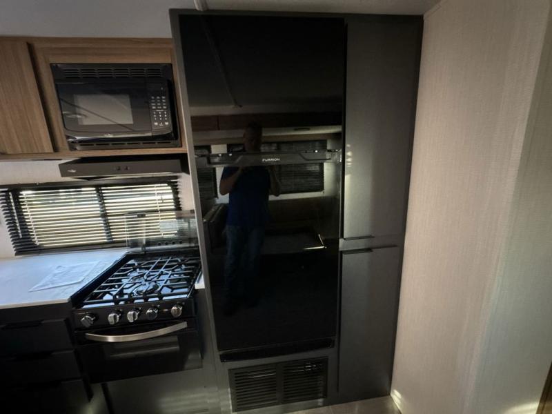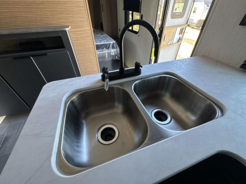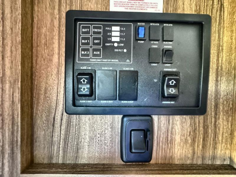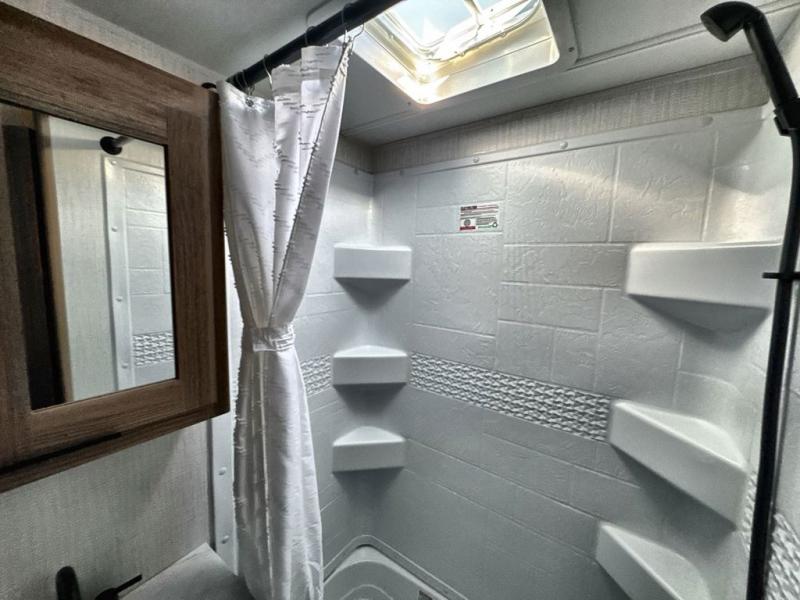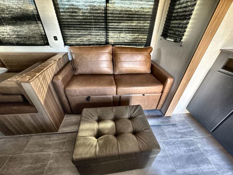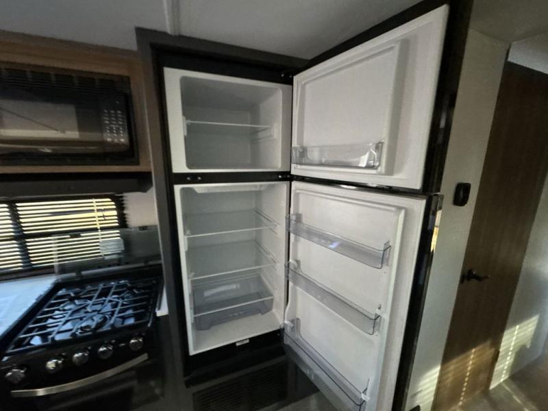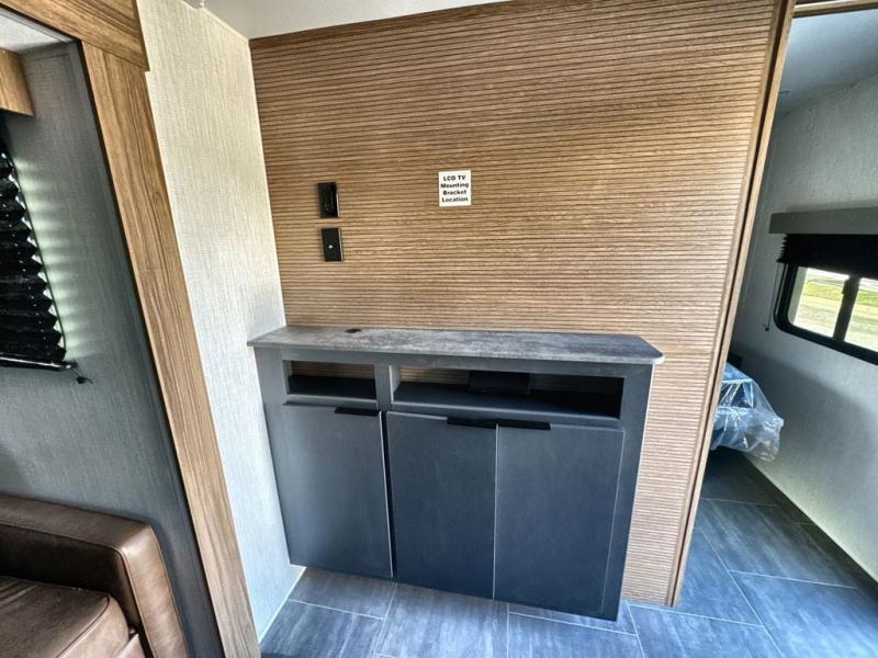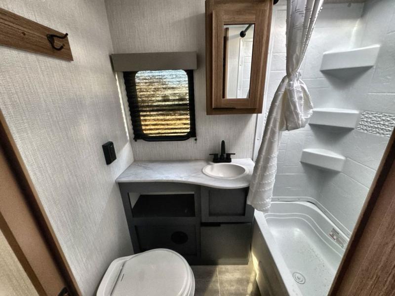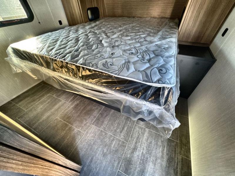 The whole family will have everything they need for a comfortable camping trip in this travel trailer! There is a rear private bunkhouse with a flip-up bunk above a dinette and an additional bunk bed. Enjoy your own privacy with the front private bedroom which has a queen bed with under-bed storage and wireless cell charging stations for one less thing to bring with you. Prepare your best home cooked meals either indoors with the three burner cooktop or head to the great outdoors to use the outside kitchen with a griddle. Everyone can gather together for meals at the U-shaped dinette then relax on the sofa.