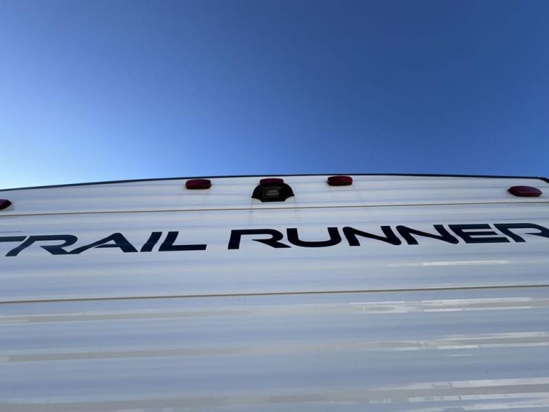 Paradise awaits at the end of the trail with one of these Heartland Trail Runner travel trailers! Experience better wind and water deflection, added strength, and a reduction of tongue weight with the hybrid aluminum front profile that has an aerodynamic radius front cage. A cambered structural steel I-beam frame holds them together and a heated enclosed underbelly protects the units vitals. There is an industry leading mammoth storage space of 57 cu. ft. pass-through storage so you can bring all of your outdoor gear with you. Roller shades in the main living area, woven flooring in all slide rooms, master suites with CPAP storage, and upgraded pressed counters give you the at-home feel you desire. Come find the perfect model for you today!