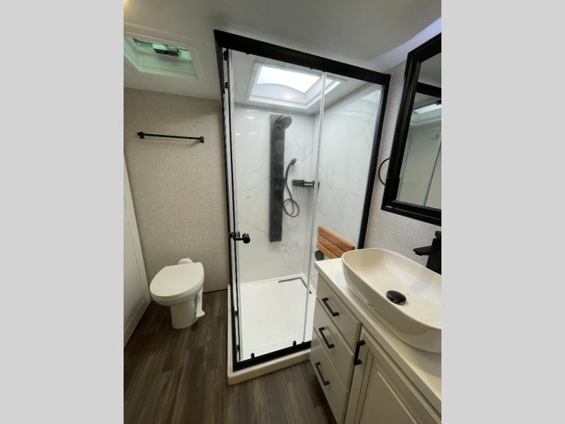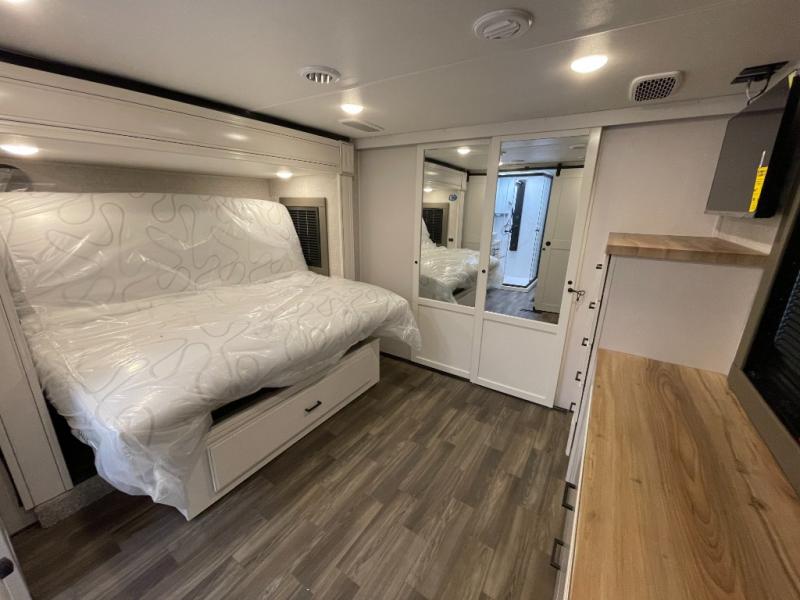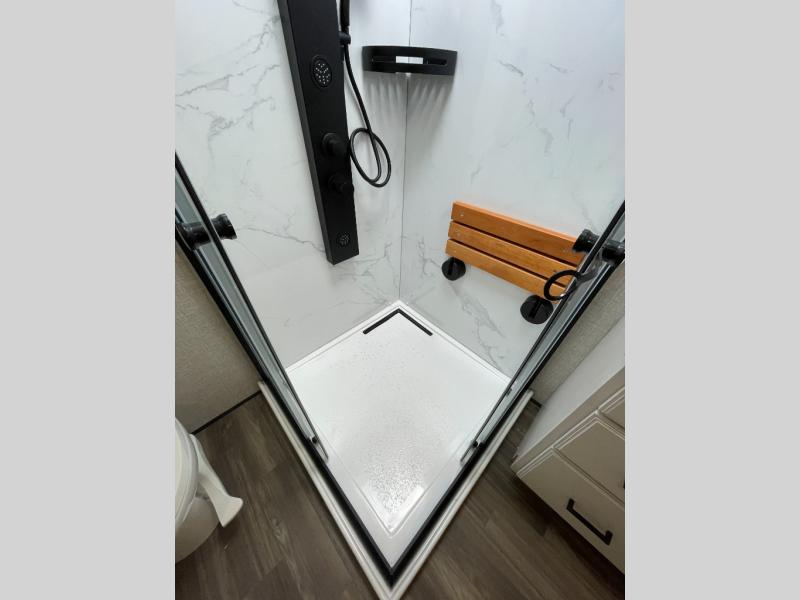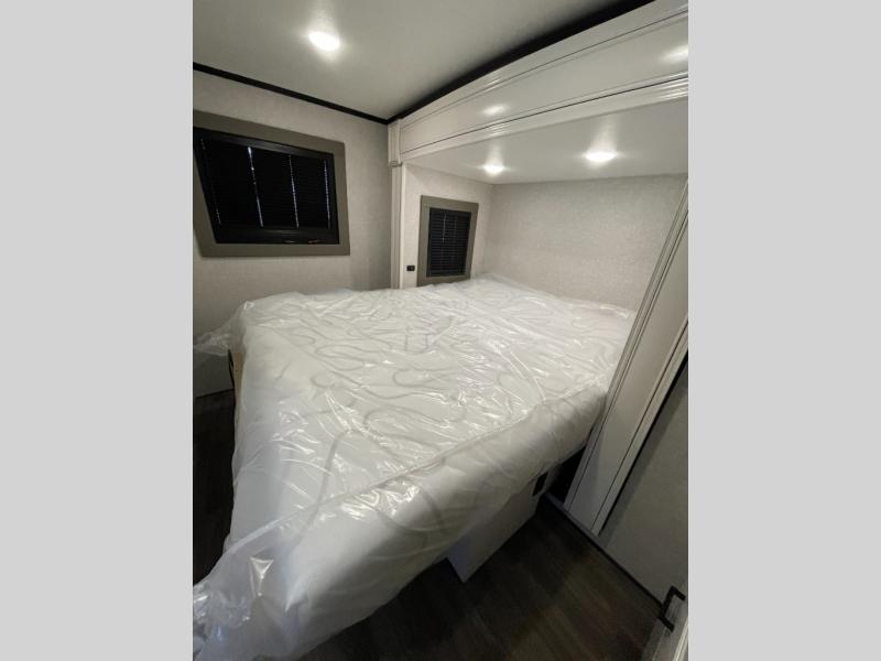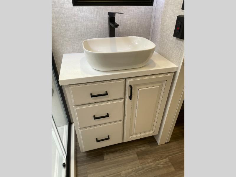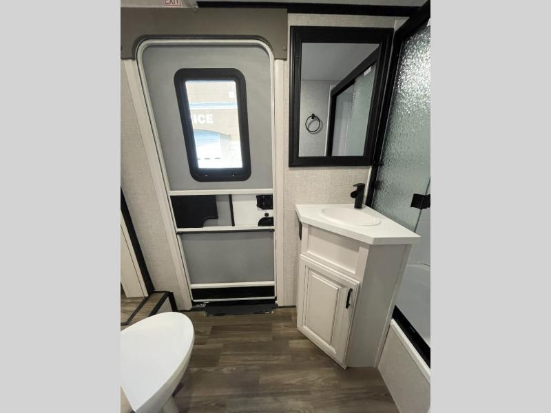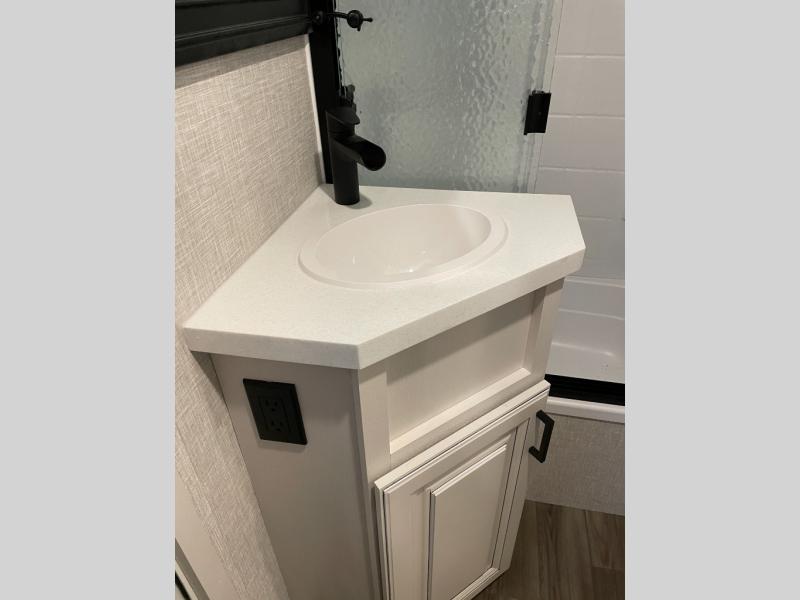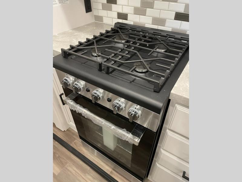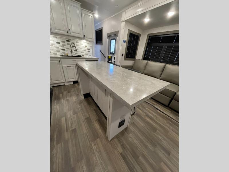 With any Open Range 3X fifth wheel by Highland Ridge, you will enjoy residential luxuries and an exceptional build. The TuffShell construction includes vacuum bonded laminated fiberglass and welded aluminum frames for added strength, and the PVC roofing membrane is ultra durable. You can plan to camp year around or go full-time since there is a mandatory Four Season Package that includes a heated and enclosed underbelly, a 40K BTU high-performance furnace, double insulated baggage doors, and more. The residential features continue on with the mandatory Executive Package with the TravelLINK Smart RV system, Keyed-Alike entry and baggage doors, painted fiberglass front cap with LED lighting, and three 15,000 BTU A/C units with quiet residential return air. Inside, you'll enjoy GE Profile kitchen appliances, sleek square windows with integrated blinds, ceramic subway tile backsplash, a glass shower door, and the list of amenities goes on!