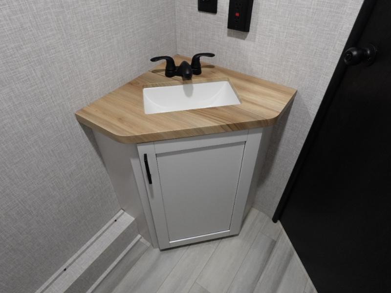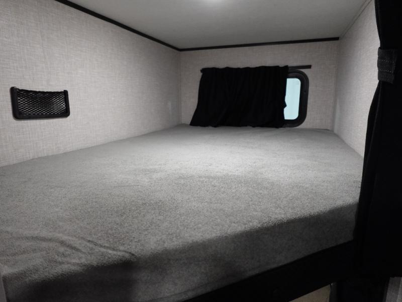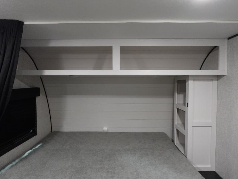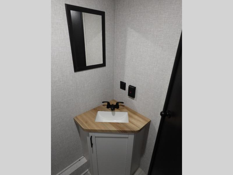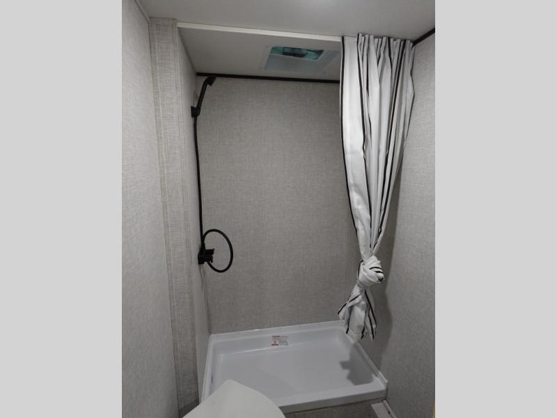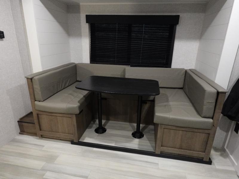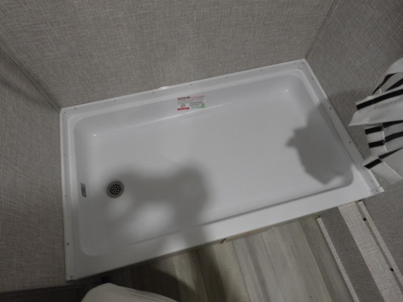 This travel trailer has everything the whole family will need for a comfortable camping trip! The kiddos can sleep on the set of double-size bunk beds, and you can sleep on the front 60" x 76" Murphy bed once converted from the sofa. You could even transform the U-shaped dinette slide into an extra sleeping space when you aren't using it to enjoy a meal prepared with the two burner range. There is even an outside kitchen with a refrigerator to enjoy a cold beverage while you cook dinner and watch the kids play a game of catch. After a fun day at the beach, head to the rear corner bathroom and wash the sand out of your hair in the tub/shower!