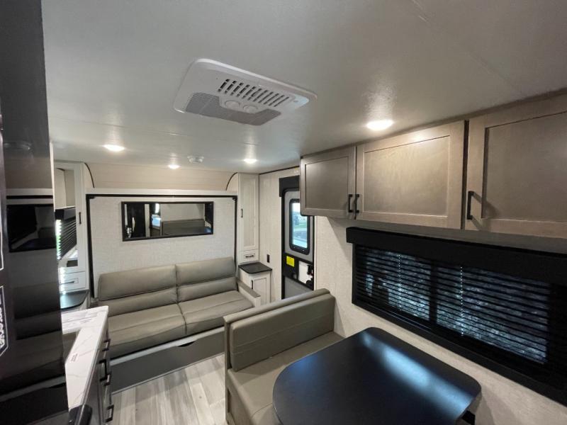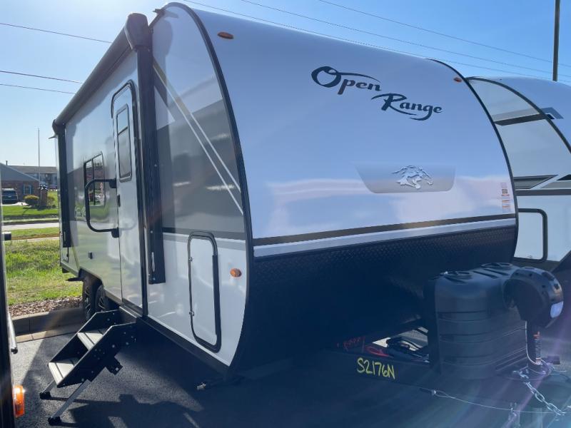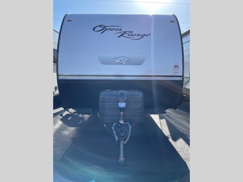 The affordable Open Range Conventional travel trailers by Highland Ridge are ready to meet your camping needs! You will appreciate the durable Magnum Roof system, plus each model is constructed with black front diamond plate protection, 5/8" main floor decking, and self-adjusting electric brakes with E-Z Lube axles for smooth towing. The 81" interior height means you won't feel cramped when relaxing with friends and family, and the residential vinyl flooring throughout is easy to clean, which will be perfect if you're camping with little ones or pets. These models also include a ceiling mount Bluetooth speaker, a digital TV antenna that will go perfectly with the optional Smart TV, plus a 13,500 BTU roof mounted A/C to keep you cool on those hot summer months.