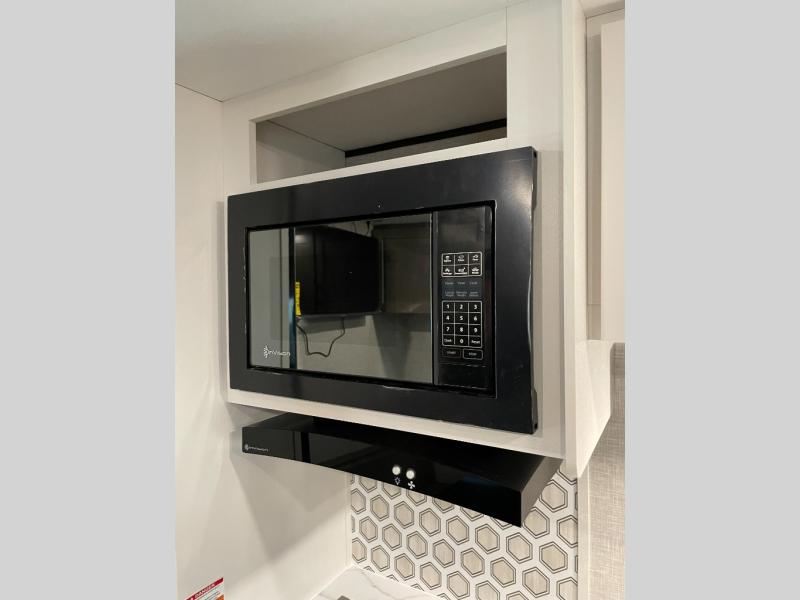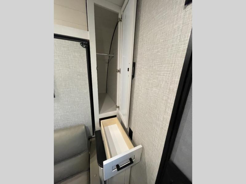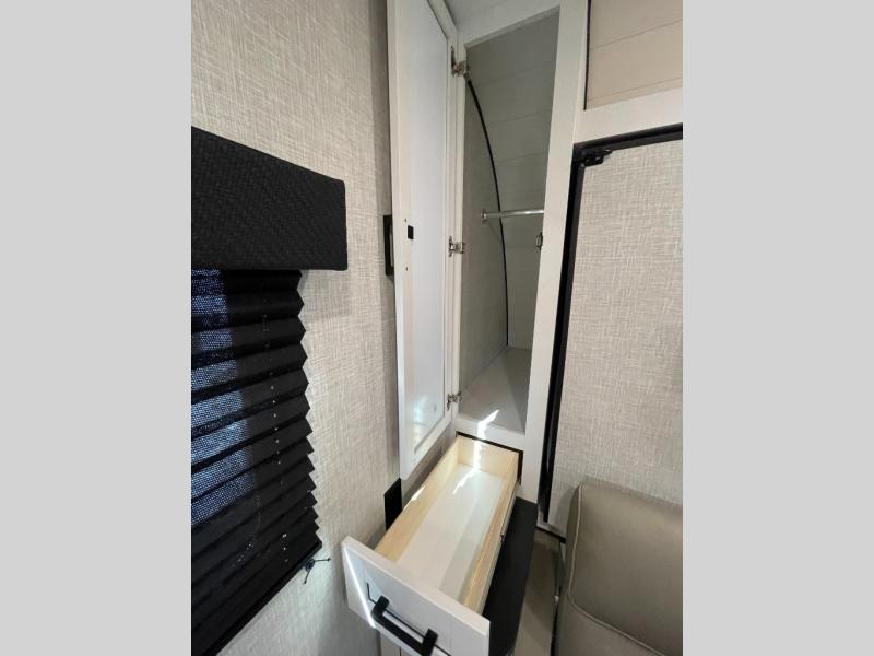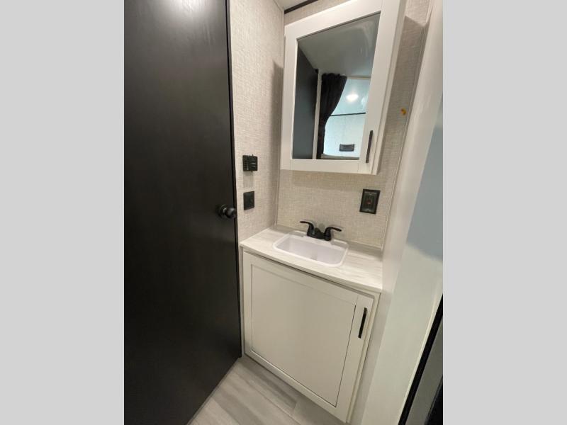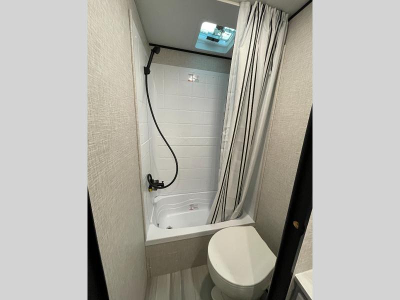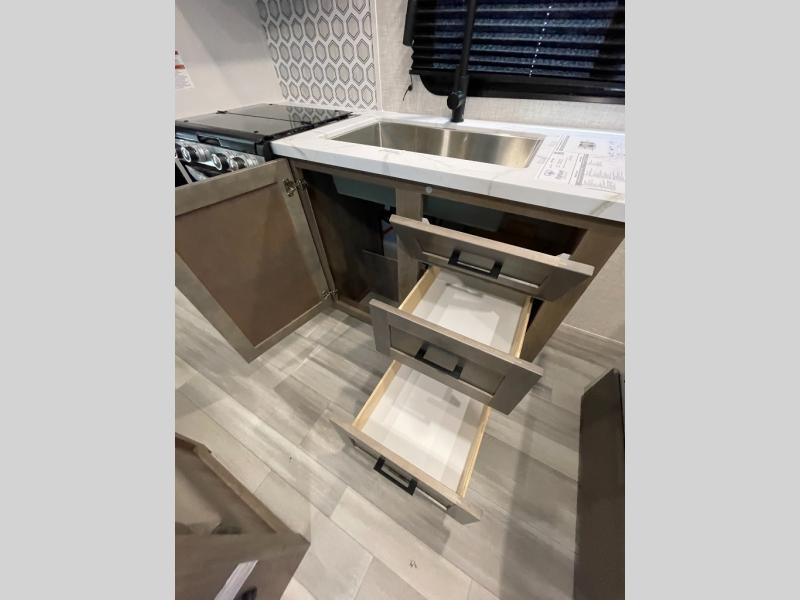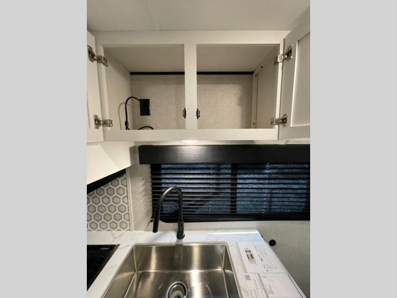 This versatile travel trailer is perfect for those wanting extra seating space during the day and extra sleeping space at night thanks to the Murphy bed. There are dual wardrobes on either side of the bed which will make it feel more like a bedroom at night, and double-size bunks can sleep four, so invite your friends along! Meals can be cooked on the three burner cooktop or in the microwave oven, and you'll appreciate an outdoor grill hookup with LP disconnect if you want to bring your own grill along.