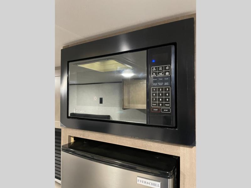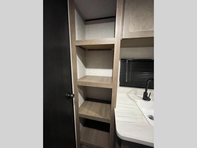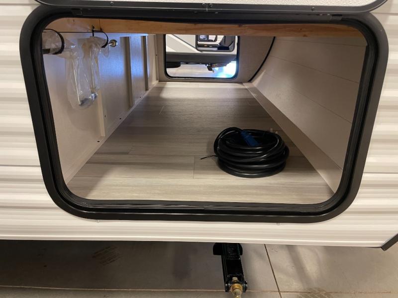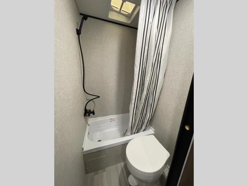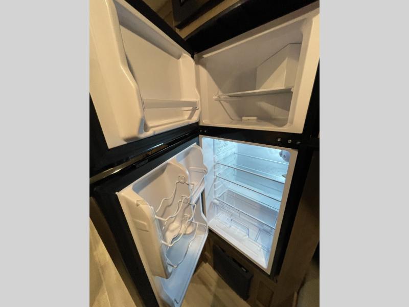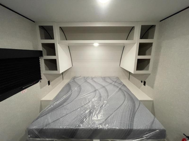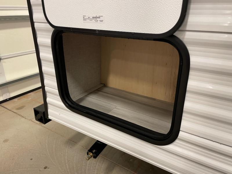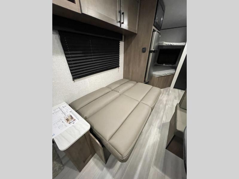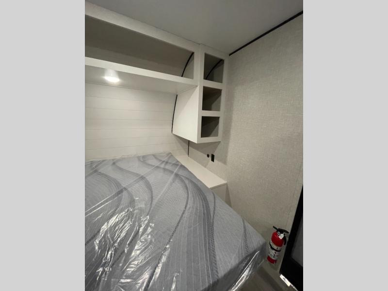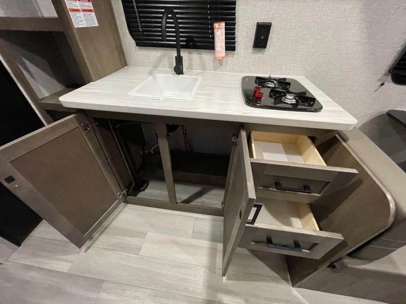 This Open Range Conventional COLT travel trailer is perfect for all your camping needs. The double-size bunk beds provide comfortable sleeping quarters for kids, while the tub/shower bathroom offers convenience and relaxation. A wardrobe provides ample storage for clothes and gear. Moving to the kitchen area, the two-burner stove top and microwave make meal prep an easy task, and overhead cabinets offer additional storage. Also, the booth dinette is perfect for family meals and games. Moreover, the jackknife sofa provides a comfortable spot for relaxation. The front bedroom features a spacious sleeping area with wardrobes on each side of the bed, offering plenty of storage for your belongings, and the 10' power awning provides shade and protection, creating a comfortable outdoor living space.