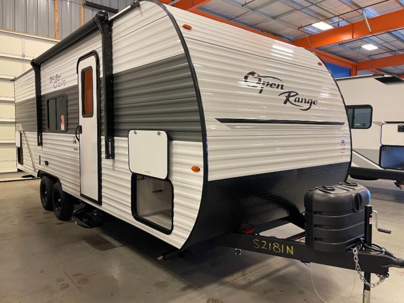 The affordable Open Range Conventional travel trailers by Highland Ridge are ready to meet your camping needs! You will appreciate the durable Magnum Roof system, plus each model is constructed with black front diamond plate protection, 5/8" main floor decking, and self-adjusting electric brakes with E-Z Lube axles for smooth towing. The 81" interior height means you won't feel cramped when relaxing with friends and family, and the residential vinyl flooring throughout is easy to clean, which will be perfect if you're camping with little ones or pets. These models also include a ceiling mount Bluetooth speaker plus a 13,500 BTU roof mounted A/C to keep you cool on those hot summer months.