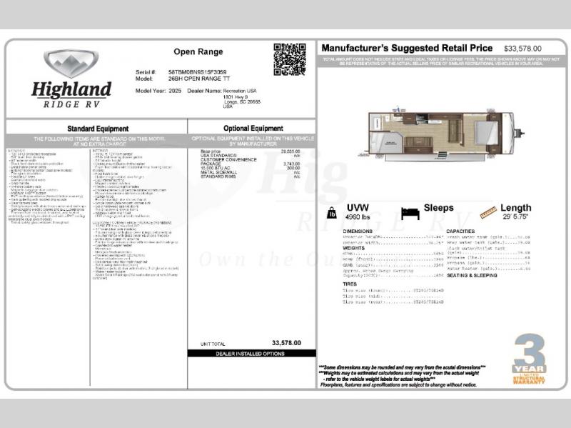 2025 Jayco Highland Ridge Open Range Conventional travel trailer 26BH highlights: