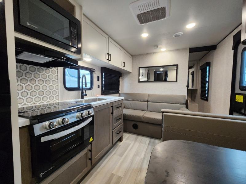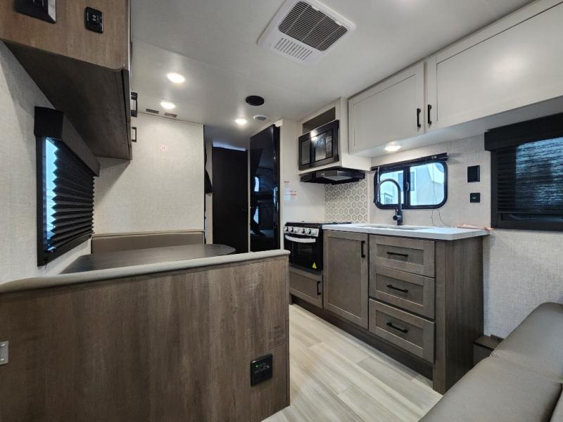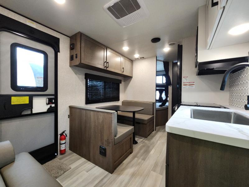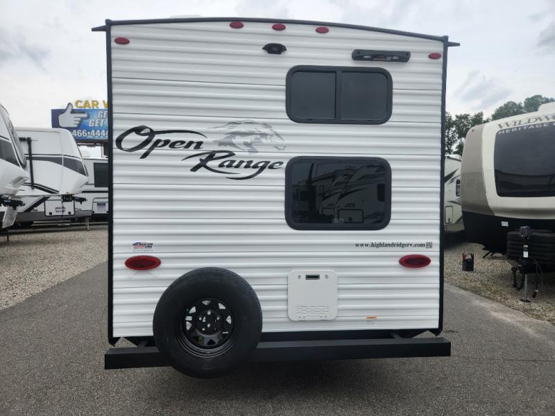 The affordable Open Range Conventional travel trailers by Highland Ridge are ready to meet your camping needs! You will appreciate the durable Magnum Roof system, plus each model is constructed with black front diamond plate protection, 5/8" main floor decking, and self-adjusting electric brakes with E-Z Lube axles for smooth towing. The 81" interior height means you won't feel cramped when relaxing with friends and family, and the residential vinyl flooring throughout is easy to clean, which will be perfect if you're camping with little ones or pets. These models also include a ceiling mount Bluetooth speaker, a digital TV antenna that will go perfectly with the optional Smart TV, plus a 13,500 BTU roof mounted A/C to keep you cool on those hot summer months.