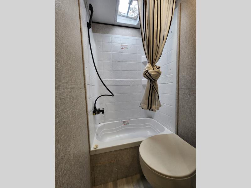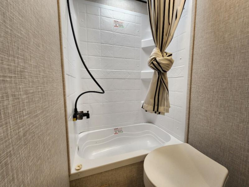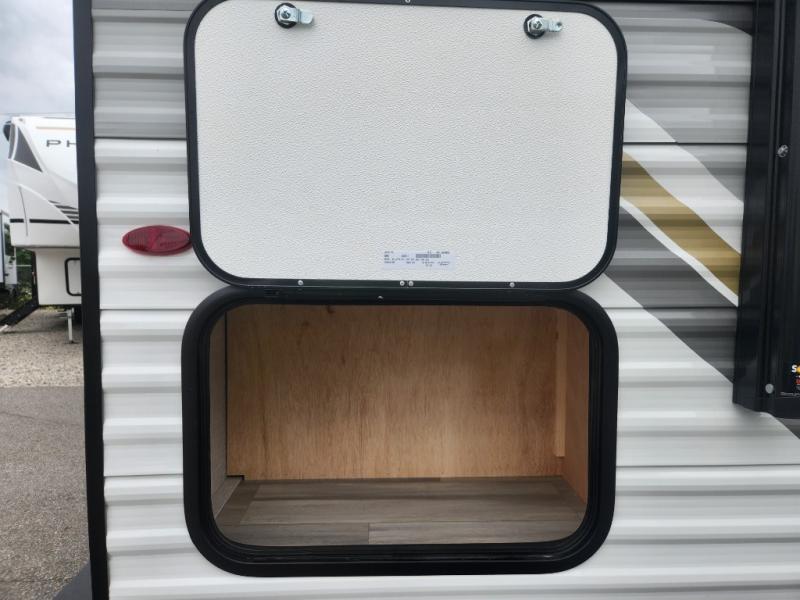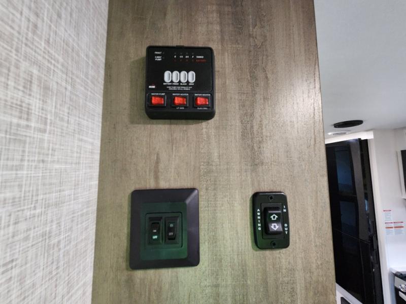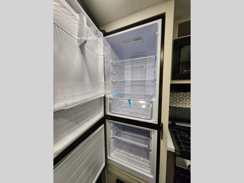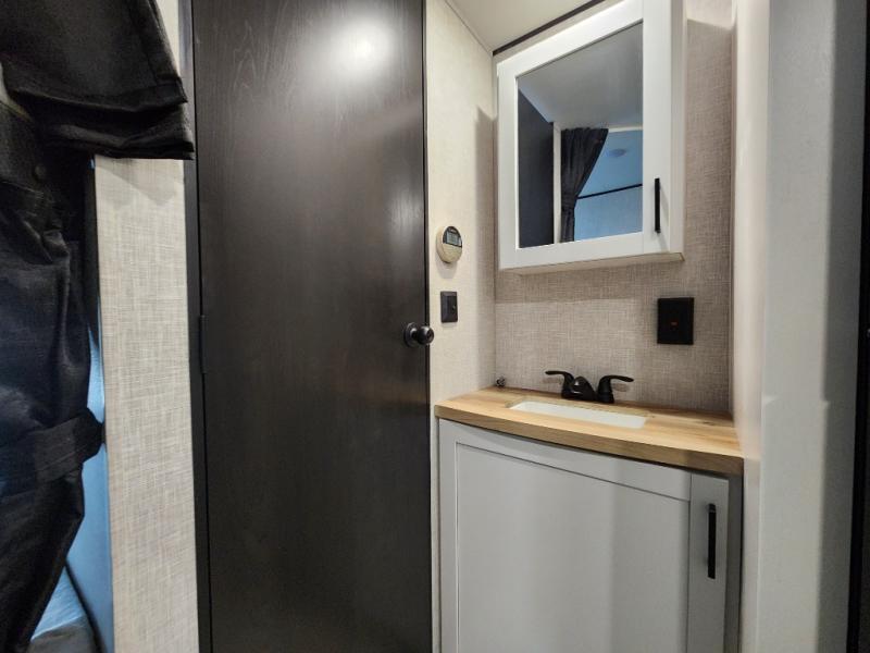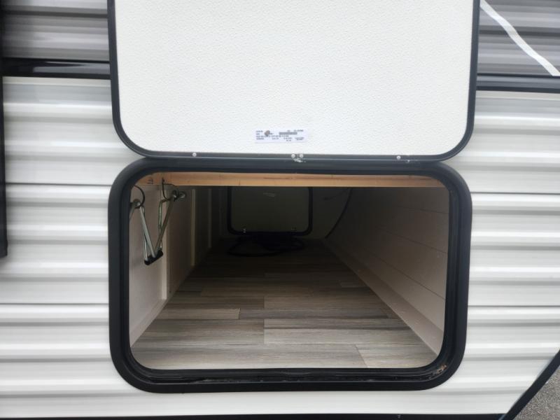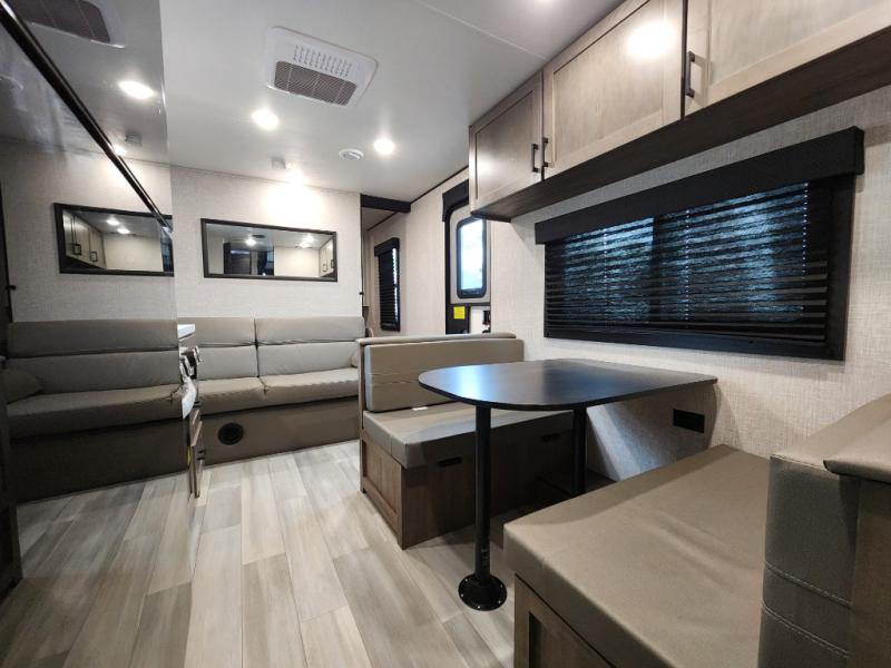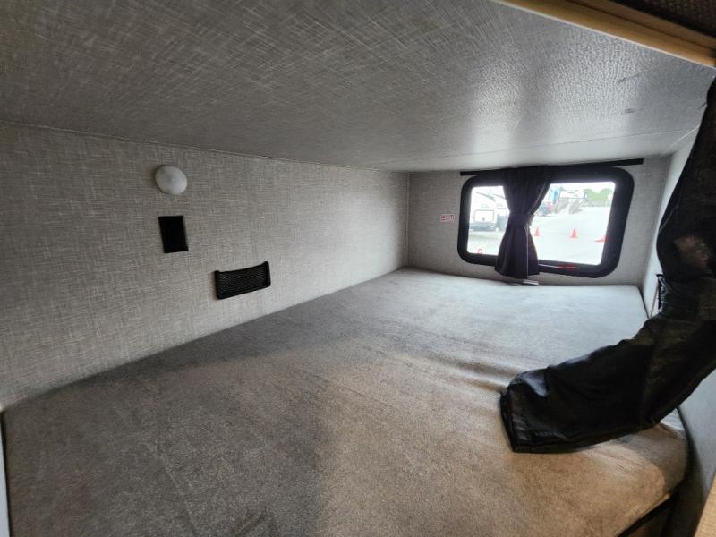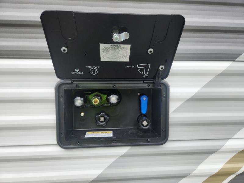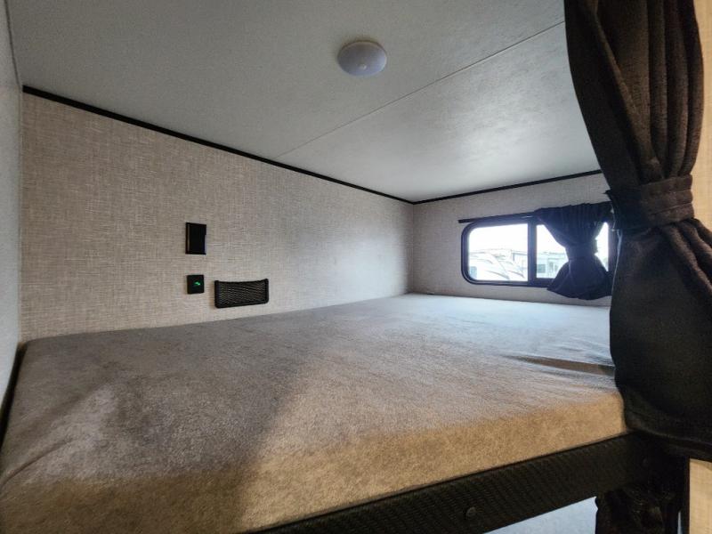 This dual-axle travel trailer can sleep eight people each night, so invite your family or friends along. You will enjoy the private bedroom up front with dual wardrobes to keep your clothes tidy. While the chef of your group is preparing lunch on the three burner cooktop, everyone else can visit on the jack-knife sofa or play a game at the booth dinette. You will also find a large 18' power awning with LED lights outdoors which is where you may usually find everyone. The private bath is right next to the double-size bunks for convenience, and the sink is just outside of this room so two people can freshen up at once.